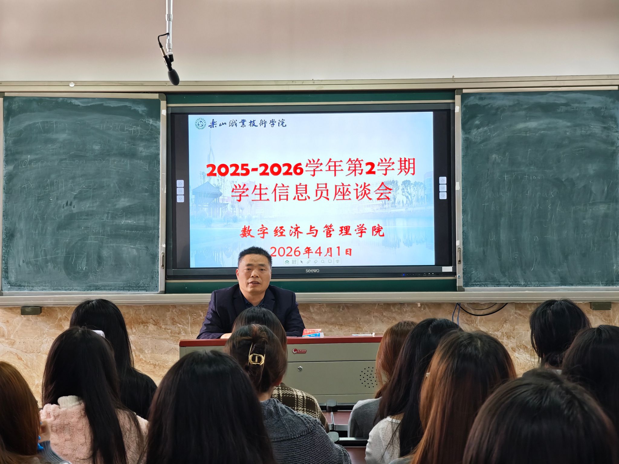 2026年4月1日中午12时,乐山职业技术学院数字经济与管理学院于教学楼1B407教室召开3月教学督导信息员座谈会。数字经济与管理学院副院长何瑞、刘佳敏老师及各班信息员出席了本次会议。