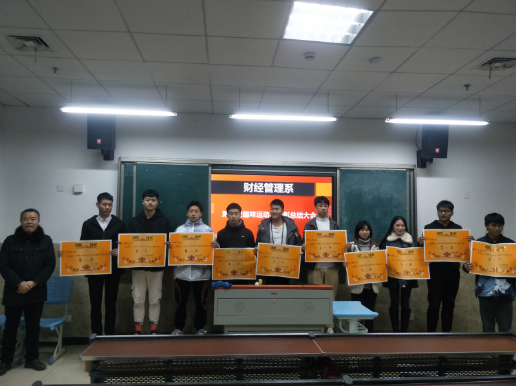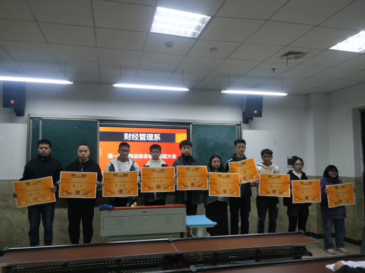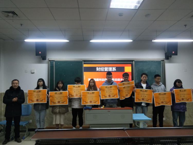 为对在趣味运动会涌现出的优秀班级进行总结和表彰,乐山职业技术学院财经管理系于2019年12月22日18:30分在教学楼如期组织举行趣味运动会表彰大会。此次表彰大会特别邀请我系易主任为获奖班级颁奖。