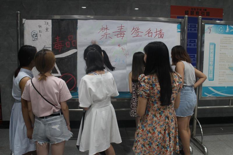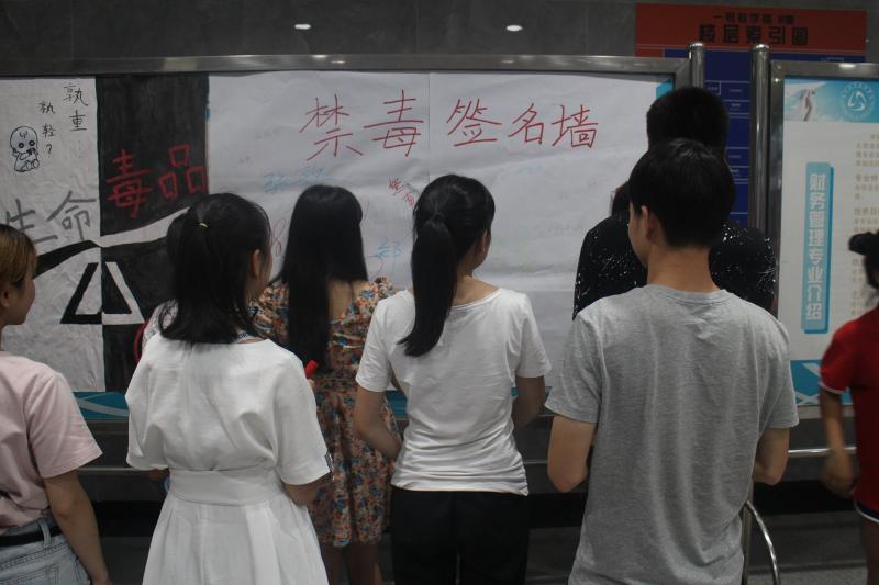 活动通过禁毒海报宣传展示、发放宣传资料、观看禁毒宣传片以及禁毒签名墙等形式,介绍了毒品的危害,宣传毒品的有关知识及国家有关禁毒的法律法规。以具体实例向同学们说明,感染毒品不仅危害社会、危害个人和他人健康,还会毁灭家庭。因此加强对大学生禁毒知识的宣传教育尤为重要,活动通过签名墙的形式,让同学们在签下自己名字的同时,留下自己的宣言,铭记远离毒品的承诺,并在心中树立正确的人生观、价值观和法制观。