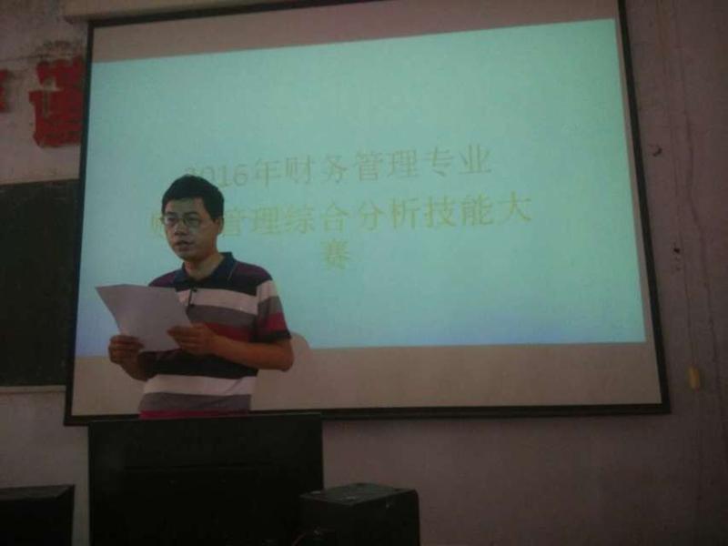 5月11日下午,根据学院教务处和财经管理系的统一安排,财经管理系2014级财务管理专业开展了2016年学生专业核心技能大赛。2014级财务管理专业两个班级五支代表队共15名同学在综合楼三楼多媒体教室参加了财务管理综合分析技能大赛,比赛项目包括情境剧表扬、PPT汇报,现场回答评委提问三个环节。参赛学生都是经过初赛和复赛层层选拔出来的,比赛现场学生参与热情非常高,体现了良好的职业素质。
