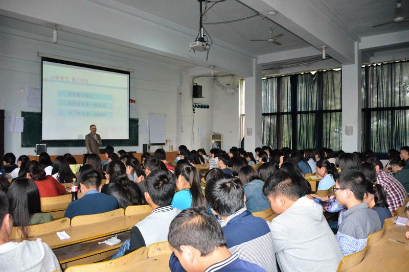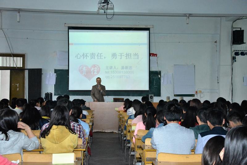 2016年4月26日下午4:00整,乐山职业技术学院财经管理系在新村校区综合楼4楼电教厅开展心理健康讲座——“心怀责任,勇于担当”,由财经管理系易新忠副主任主讲,2015级全体同学参加了本次讲座。