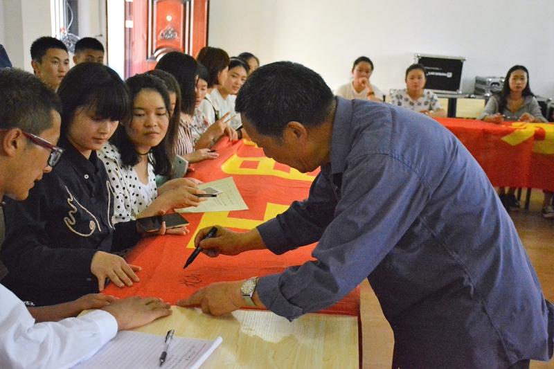 会议伊始,代表们分别从不同的角度表达了自己对五四青年节的认识,分别结合自身情况对当代大学生需要继承的优良传统发表了自己的看法,随后林永庆校长结合自己的亲身经历,为在座同学进行了深入浅出的讲述,从自己当兵事迹到后来面临就业选择的问题,和自己放弃高薪的职业从事自己所喜欢的职业,为此实现自己的人生价值,为此林老师给同学们提出三大建议:一、努力学习,做好知识储备;二、树立吃苦耐劳的基本思想;三、受到挫折不气馁,强调了如何做好自己的人生规划,实现人生理想的重要性。之后全体师生在团旗面前进行了庄严的重温入团誓词,并在主题标语上郑重的签上了自己的名字,座谈会后大家在主席台处进行了合影,也为本次座谈会画上了一个圆满的句号。