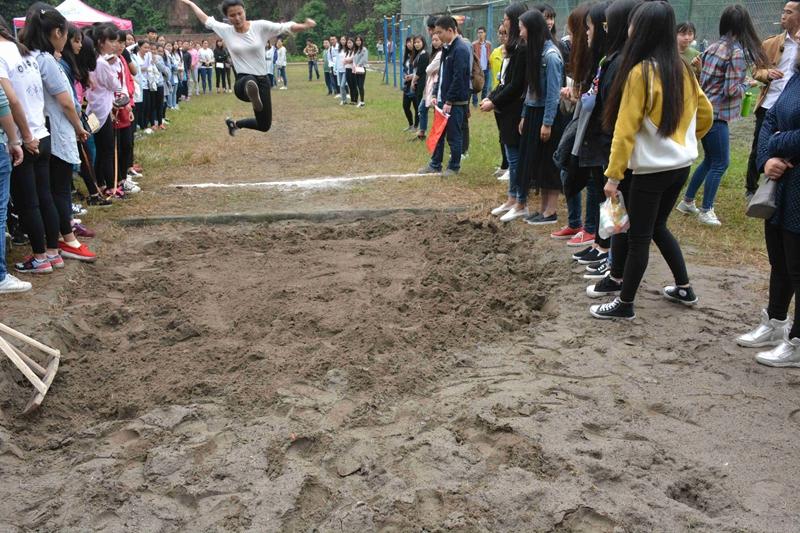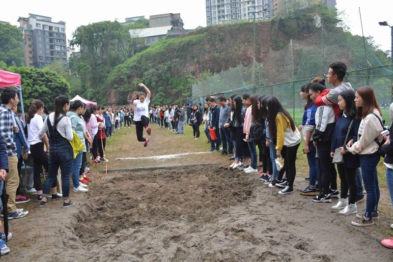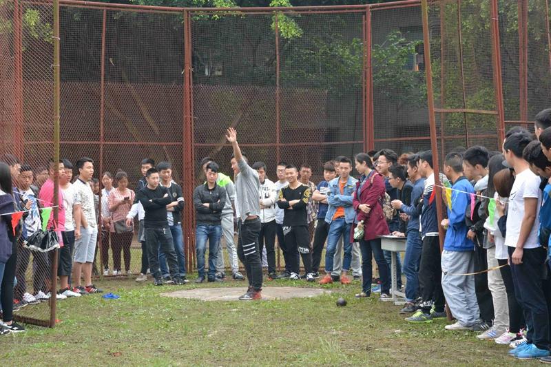 2016年4月14日上午九点,乐山职业技术学院第十三届大学生田径运动会新村赛区的比赛正在进行。今天的比赛项目有田赛类:女子铅球预/决赛、男子铅球预/决赛,女子跳远预/决赛。