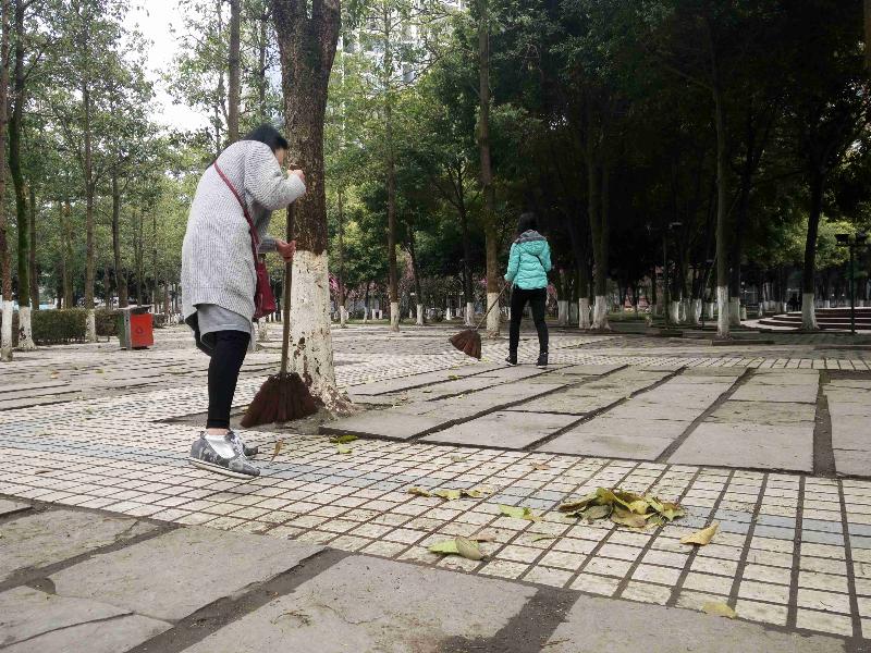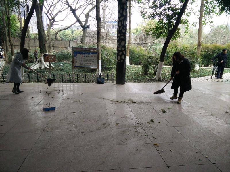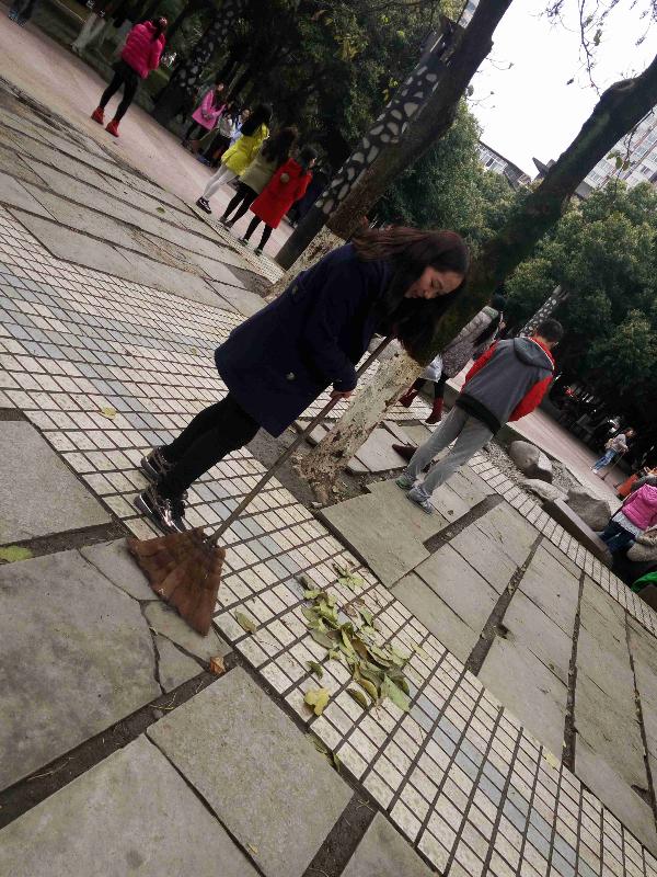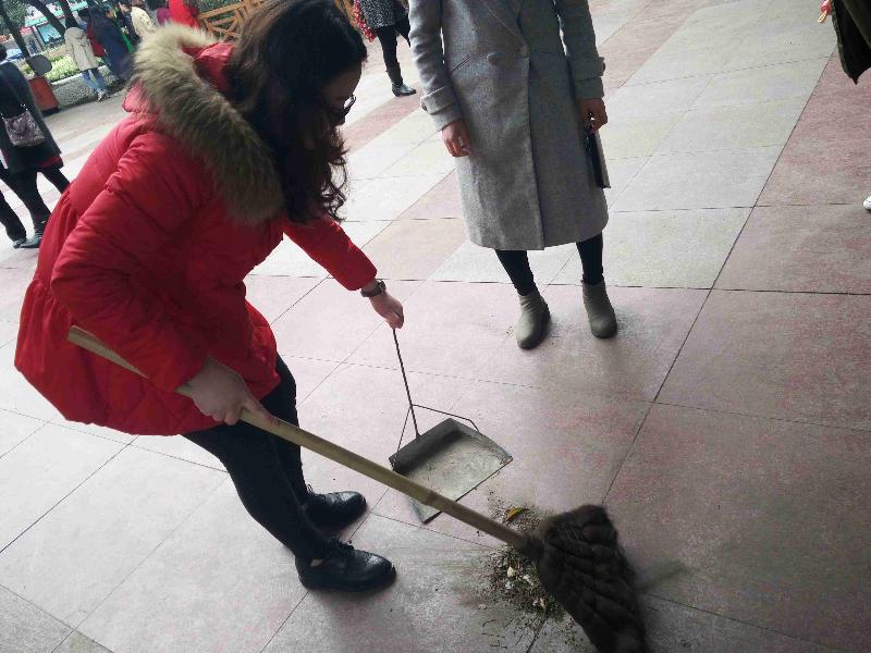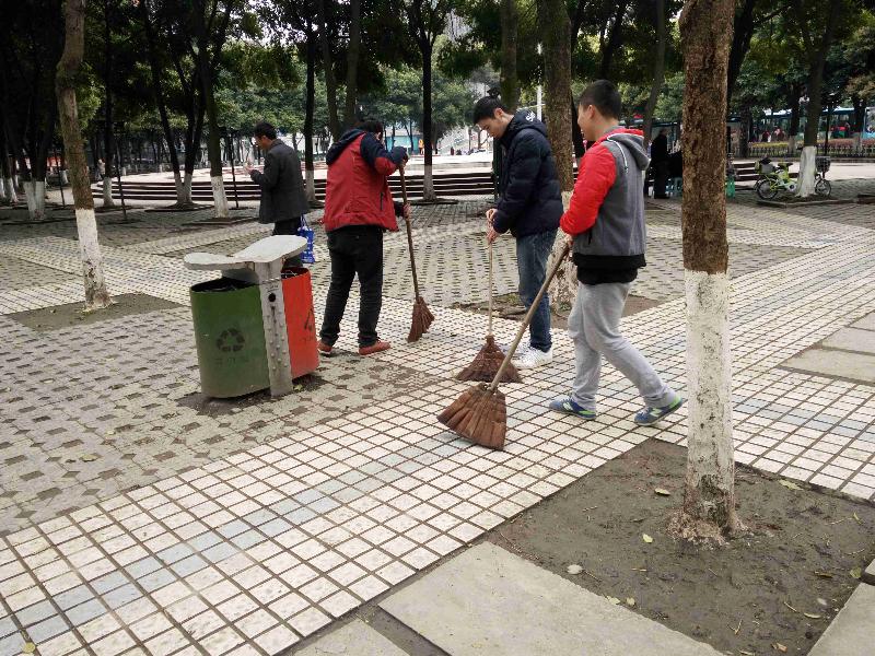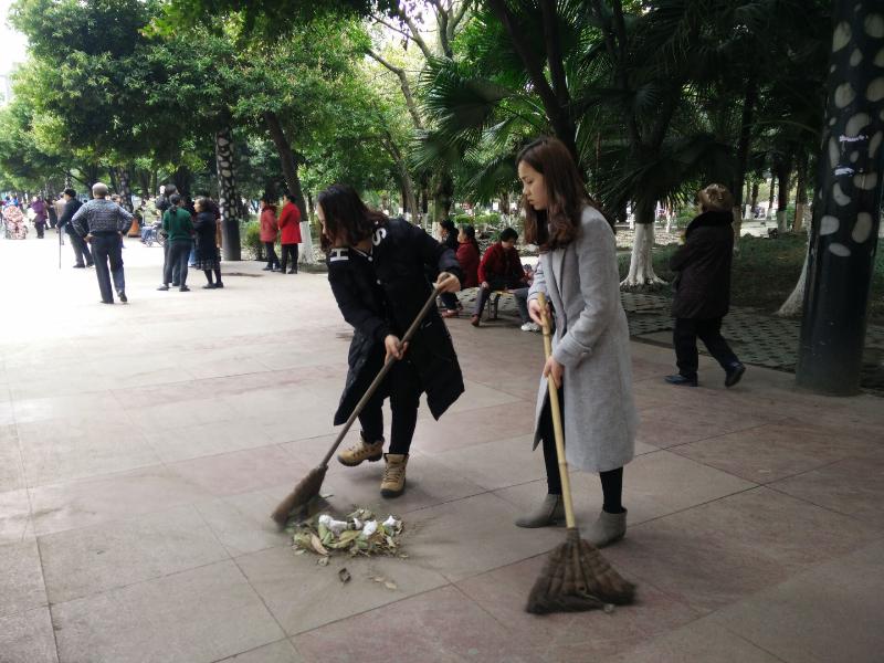 活动开展期间,同学们先到教室集合清点人数,再以小组为单位到阳光广场开始环保工作。同学们按事先分配的任务进行扫地、撕小广告、并向市民宣传环保知识等活动。