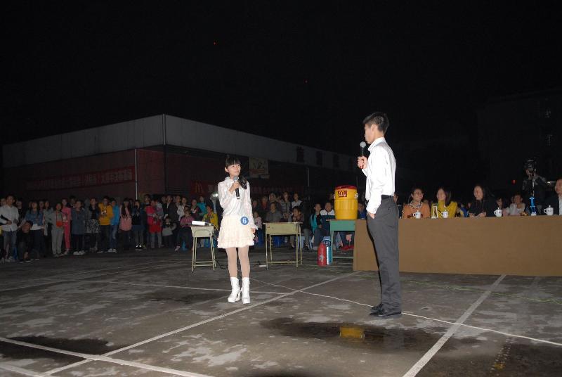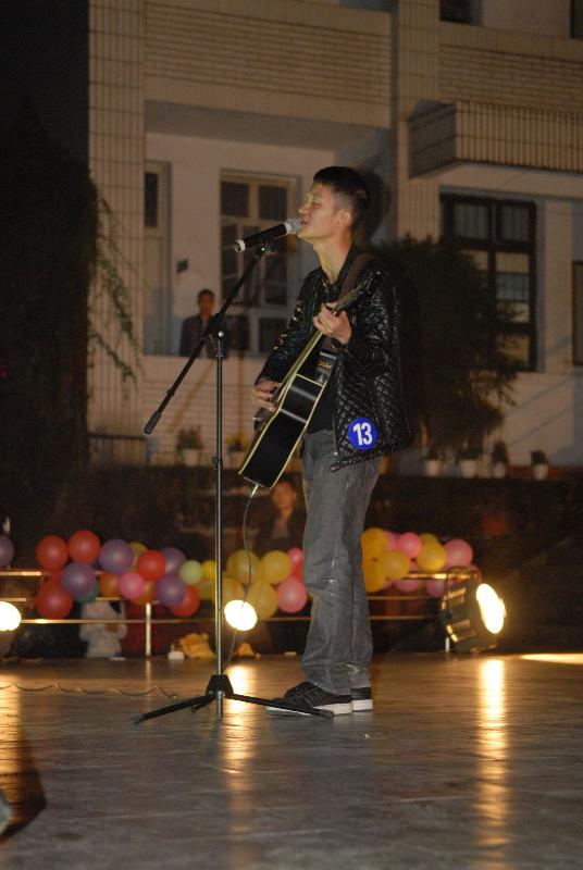 晚上7:00整,20位歌手和12名主持人伴随着音乐“小苹果”竞相登场,作为开场活跃了现场的氛围。紧接着在舞台上,选手们八仙过海,各显神通,他们仿佛不是在比赛而是在享受舞台和聚光灯的照射,彰显了友谊第一比赛第二的活动精神。歌手优美悦耳的声音,主持人轻松欢乐的电音配音,一场场表演,汇集成今晚的热闹非凡。台下无论是评委还是观众都给予了最最热烈的掌声。