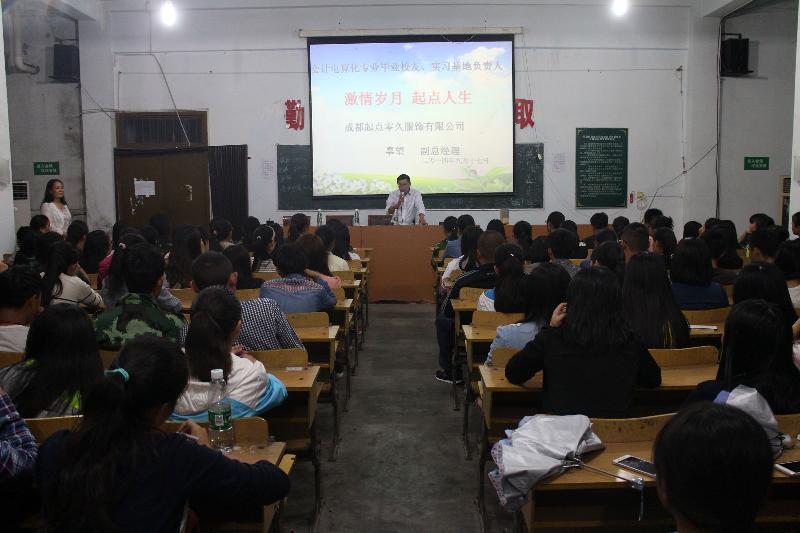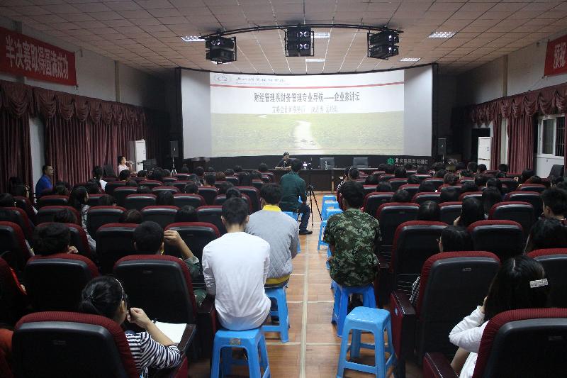为使2014级新生对就读的专业有更加清晰的认识和定位,乐山职业技术学院财经管理系于2014年9月17日晚19点30分,分别组织了财务管理、会计电算化、房地产经营与估价等专业的新生参加了专业引导之企业家讲坛活动。本次讲坛邀请了方略会计师事务所总经理成志勇,成都起点零久服饰有限公司副总经理辜望和四川宏业软件有限责任公司经理梁婷、黄俊祥。