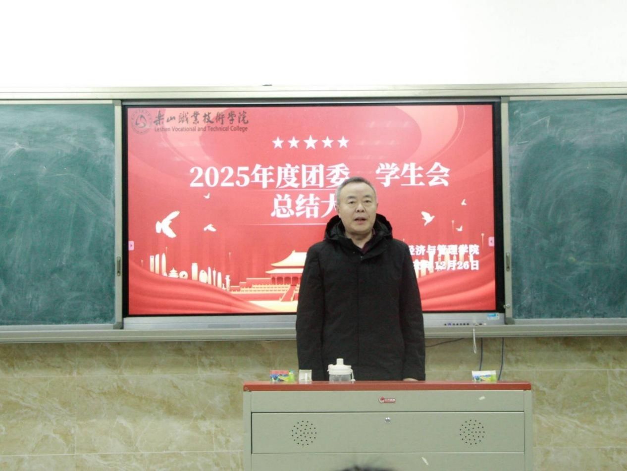 乐山职业技术学院数字经济与管理学院于2025年12月底在教学楼2c101举行2025年度团委、学生会总结大会,数字经济与管理学院专职副书记易新忠、团委书记林子琪、学生会指导老师刘锡辉出席了本次大会。