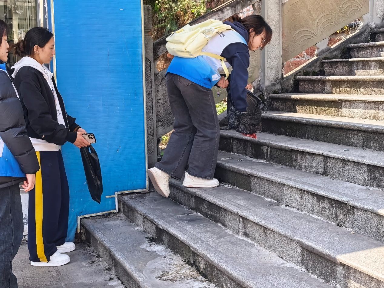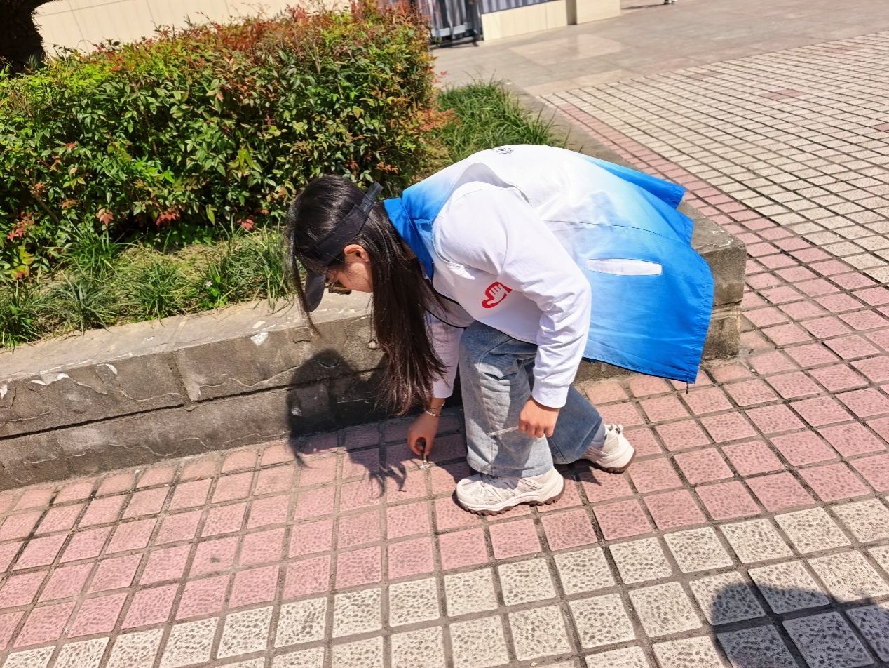 在活动现场,志愿者们身着统一志愿服,手持垃圾袋,分工协作、有序行动。志愿者们对海棠广场的路面、绿化带、街巷角落等区域进行全面清理,拾起路面的烟头、绿化带里的塑料瓶、零食包装、卫生纸、果皮等垃圾,随后将手持垃圾袋打包好垃圾装入垃圾桶。志愿者们不怕脏、不怕累,以饱满的热情投入劳动,用实际行动诠释奉献、友爱、互助、进步的志愿精神。最后,在志愿者们的共同努力下,海棠广场及周边街巷环境得到了极大的改善。