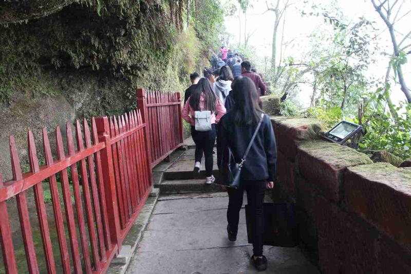 在此次春游中,当我们进入景区时,景区内等候下九曲栈道观大佛的游客已排起了“长龙”,佛头片区游客扎堆。在去佛脚的过程中因下山栈道空间有限,游客只能缓慢通行,不少游客需要排队1个小时或更久,才能走到大佛脚底。尽管如此,为了一睹乐山大佛的雄伟,游客们仍然井然有序地排队等候,依次前行。而在过栈道时,虽地势险要,但保护措施却做得很好,避免了不必要的事情发生,同时,与大佛相比其他景区也毫不逊色,例如:巨型睡佛、东方佛都、凌云塔、凌云禅院、乌尤山等。