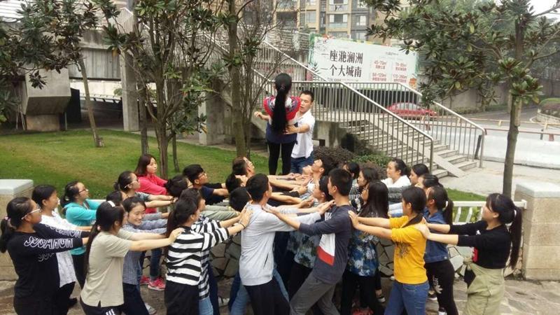 早上6:50,全体集合完毕。于8点到达素质拓展地点集合完毕之后,由总教练罗焰宾带领大家做了热身运动,紧接着大家围坐一圈,进行了“名字叠罗汉”“大风吹”等游戏,打破了陌生人中间的坚冰,不仅打破了大家的陌生感,也都相互认识了。之后,分三队开展了“纸杯传水”“七拼八凑”等游戏锻炼了大家的勇气和反应能力,经过上午游戏的激烈比拼,三队队员们分别获得了17元、20元的午餐费,三队通过与商家的沟通交流,使用少量的钱解决了整个团队的温饱问题,这顿饭让大家意识到了节约以及积极多角度思考问题的重要性。下午进行了“信任背摔”游戏,成员们体会到了相互信任和帮助的美妙感觉,使得团队的合作更加默契。最后进行了“团队行进”的游戏,队员们通过和队友的交流、配合、奉献,完成了很多艰难的任务,大家深深感受到了团队力量的巨大,“小游戏,大人生”的意义得以体现。傍晚,所有人围坐在一起,进行了“西游记裁员讨论”,让大家知道了自己在团队中的角色和自己核心竞争力的重要,也相互交流了一天素质拓展的感受。至此,本期素质拓展活动圆满完成。