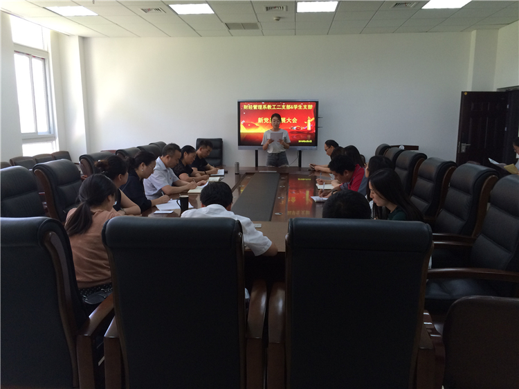 2018年6月6日下午,乐山职业技术学院财经管理系教工二支部、学生支部召开新党员发展大会,本次大会共发展吸收八名优秀学生为中共预备党员。会议由支部书记易新忠同志主持,全体党员佩戴党徽参加。