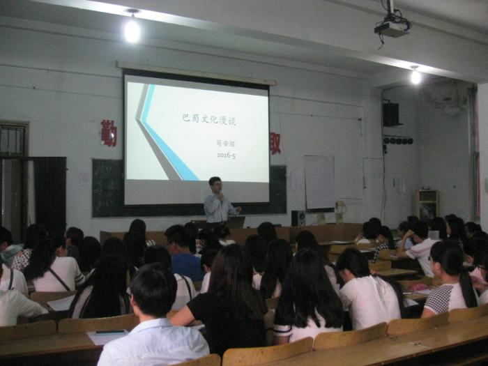 参加学术报告的班级有普专商务15级1班、普专商务15级2班,共计84名学生。学术报告从巴蜀文化的渊源,巴蜀文化的组成,巴蜀文化的发展现状等方面进行分析,引入案例,提出了在弘扬传统文化的基础上,不断创新。