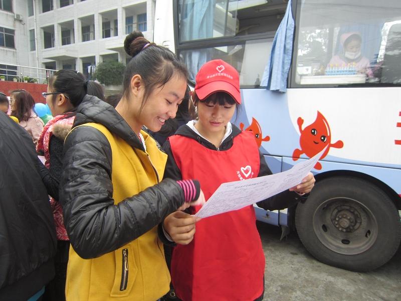 我系青年志愿者协会,协助乐山市中心血站在主席台前搭建采血点,方便采血工作的顺利展开。有意愿献血的同学聚集在主席台前填写志愿表、量血压、采集血样。尽管天气有点寒冷,但仍然挡不住同学们献血的热情,同学们一个个热情洋溢的报名参加献血,将自己的鲜血奉献出来,献给那些最需要的人们。前来献血的同学说:“我献血前的心情非常激动,就算献血很疼心里很忐忑,但是我并不感到害怕,因为这是我感到光荣的一件事。”也许有的人认为献点血没什么,但是那献的不仅仅是血液,那更是爱,那是同学们最无私的爱,最纯洁的爱。小爱汇集成大爱,大爱无言真情在。献血车上有条不紊的进行着血液采集工作,医务人员严谨认真,对同学们的态度温和有礼。前来献血的同学们也谨遵医师嘱咐,这让整个采血工作呈现出和谐的情景。
