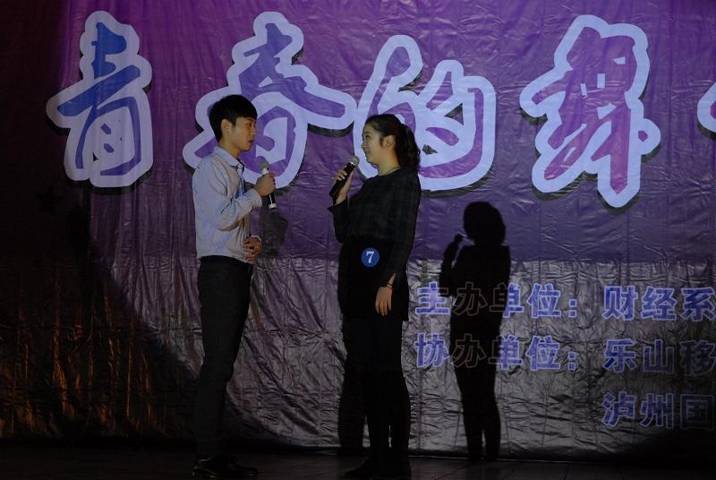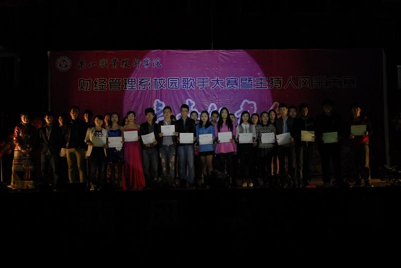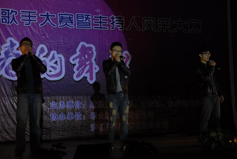 “张扬个性,才艺比拼”,2013年11月4日19:00,乐山职业技术学院财经管理系在新村校区上操场举行了校园歌手大赛暨主持人风采大赛。本次大赛由乐山职业技术学院财经管理系文艺部、宣传部、社会实践部主办,感谢乐山移动嘉州分公司、泸州国牌酿酒有限公司支持与协助。