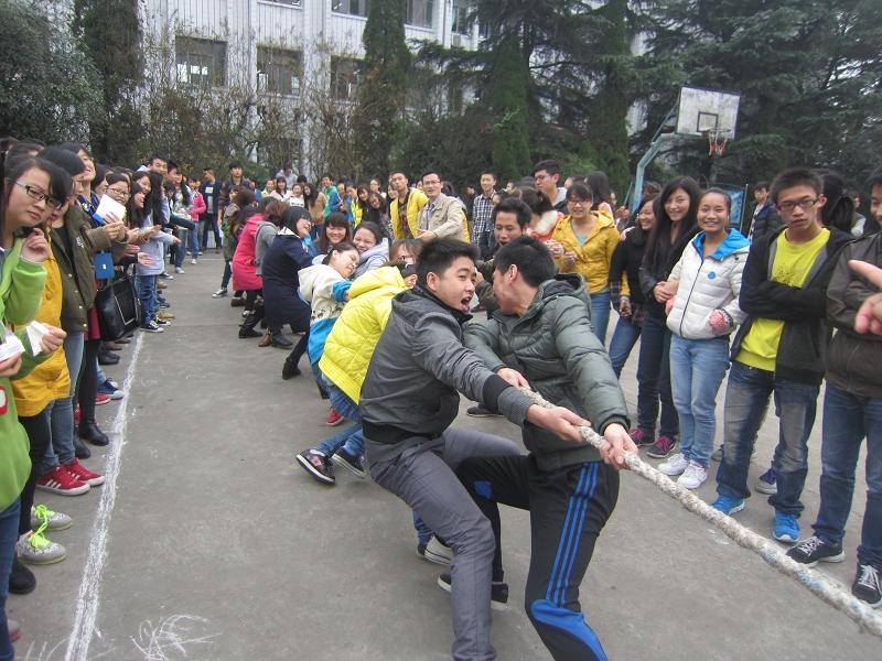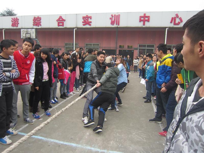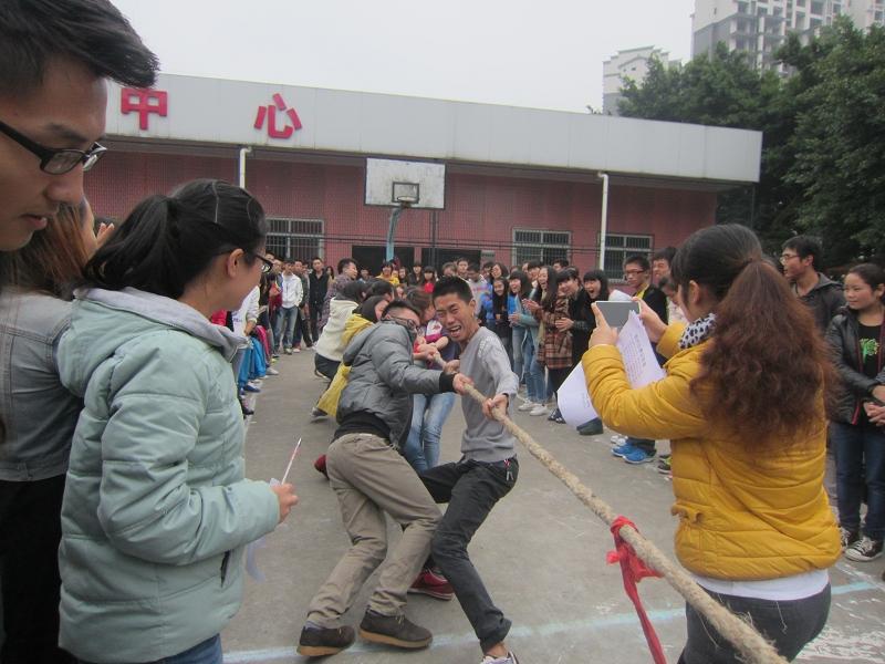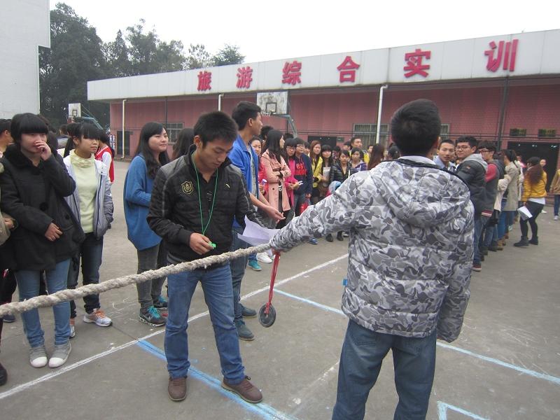 为增进我系班与班之间的友谊,增强同学之间集体凝聚力。2013年11月7日中午12:30,乐山职业技术学院财经管理系学生会主办的学生汇.show之拔河比赛初赛在新村校区上操场进行。为保证比赛的公平进行,裁判是由学生会的干事组成,比赛方式采取抽签进行的,并采用淘汰制。比赛共分A 、B两组,A组有6队12个班参赛,B组有7队14个班参赛。