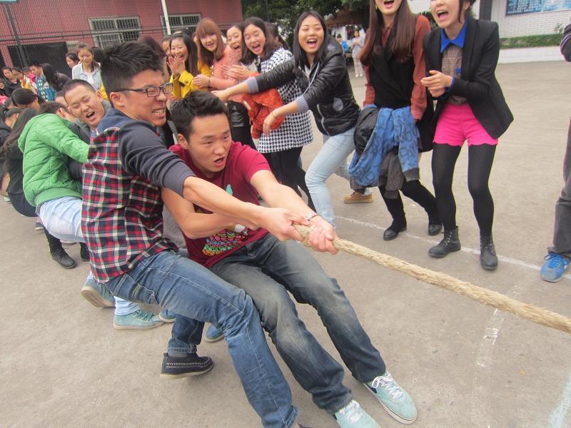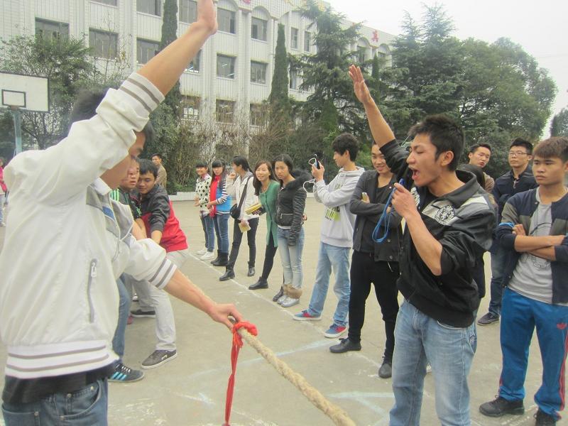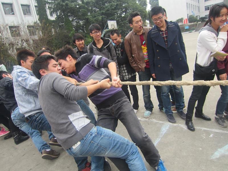 2013年11月11日中午12:30,乐山职业技术学院财经管理系在上操场进行了拔河比赛总决赛,经过上周各班间的激烈角逐后,产生了总决赛队伍,冠军将在参加决赛的六支队伍中产生,获胜队伍进行巅峰对决,分出冠、亚、季军。