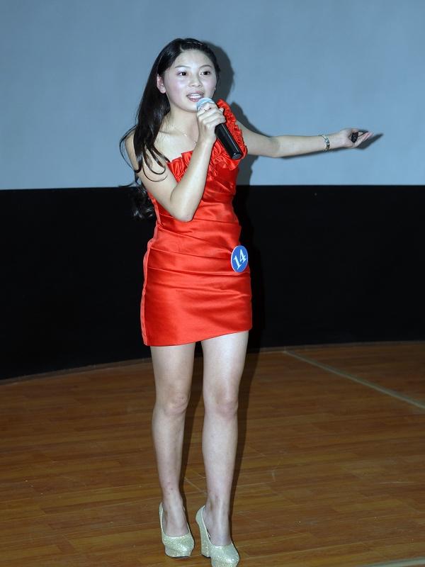今晚的决赛分为三个环节,分别是秀出自我、电影配音以及脱口秀。晚7点整,比赛正式开始,14名参赛选手身着靓丽的礼服,一个一个的走上舞台展示自我,他们的介绍真是多姿多彩,台下的观众们也是掌声不断。第二轮的电影配音,这个环节考验选手的综合语言能力,我们的决赛选手们两两配合默契,将电影片段配出了自己的风格。台上热火朝天,台下的观众也是激情四射的为自己喜爱的参赛者呐喊助威。第三节的脱口秀现场抽题,考验选手的思维反应力、团队合作意识等。选手们围绕题目进行搭档主持,决赛的选手面对诸如“中国梦”、“对土豪一词的理解”、“美丽的家乡”、“王菲离婚了,你还相信爱情吗?”等等各式各样的主题论述的十分的精彩,博得了观众的阵阵欢呼声。