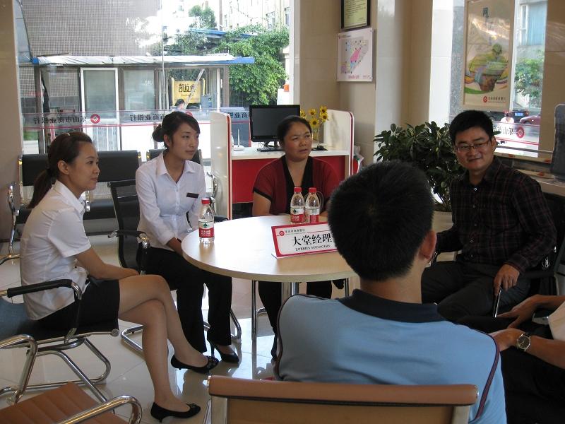 9月12日,系领导苟安经主任、梅淑先副主任、吕国生老师和系教务办相关老师等一行,在市中区支行王行长、郭主任的陪同下,对乐山商业银行新村网点、东大街网点、柏阳路网点学生,进行了巡回检查。
