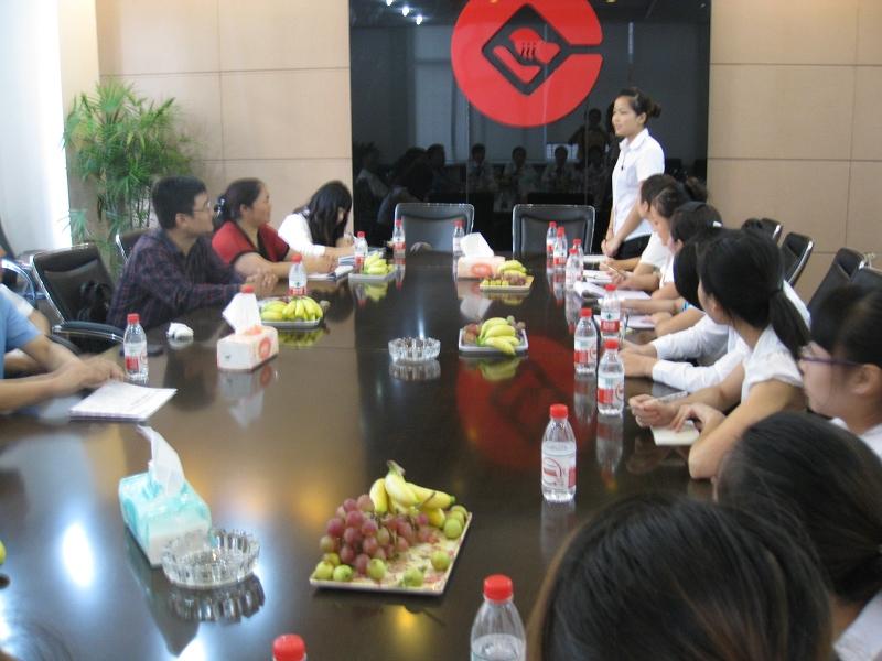在乐山市商业银行会议室,单位领导、所有同学,举行了实习座谈交流会。王行长对我系在单位实习的学生情况进行了介绍,对学生的整体表现、业务技能、综合素质等方面给予了高度评价,并对三名表现尢为突出的学生进行了表扬。