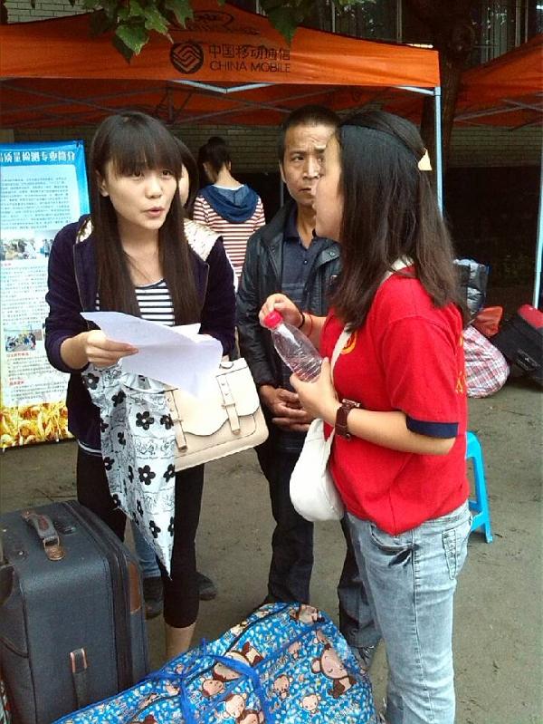 早在昨天,就有新生前来报到,今天的场面更加壮观,一张张热情的笑脸,一句句亲切的问候,一项项贴心的服务,到处都有忙碌的身影。学生干部们配合默契,各就各位,热情接待每一位新同学,一次次的将新生及家长从迎新接待点接送到学校指定地点。随着新生陆陆续续的到来,干部们主动帮助他们把行李寄存好,有条不紊的引领新生完成报到的所有程序,不厌其烦地问答着新生、家长提出的各种问题,一路上谈笑风生。整整一天,大家都坚持奋战在自己的岗位上,忙得不亦乐乎,整个迎新过程都井井有条。