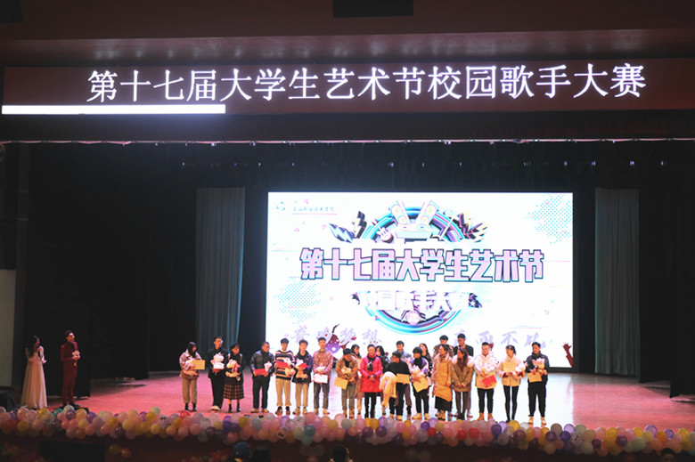 经过三轮激烈的比拼后,最终新能源系张书恒同学、机电系孙家元同学和财经管理系谢镜锐同学分别以《沧海一声笑》、《这一生关于你的风景》、《病态》荣获冠、亚、季军。随后由杨芸老师、范砾老师、朱莉老师三位评委上台为参赛选手颁奖。在比赛即将拉下帷幕时,主持人组织所有参赛选手和评委老师上台合照留念,保存这份美好回忆,至此乐山职业技术学院第十七届大学生艺术节“‘音’为梦想,‘声’而不凡”校园歌手大赛圆满结束。