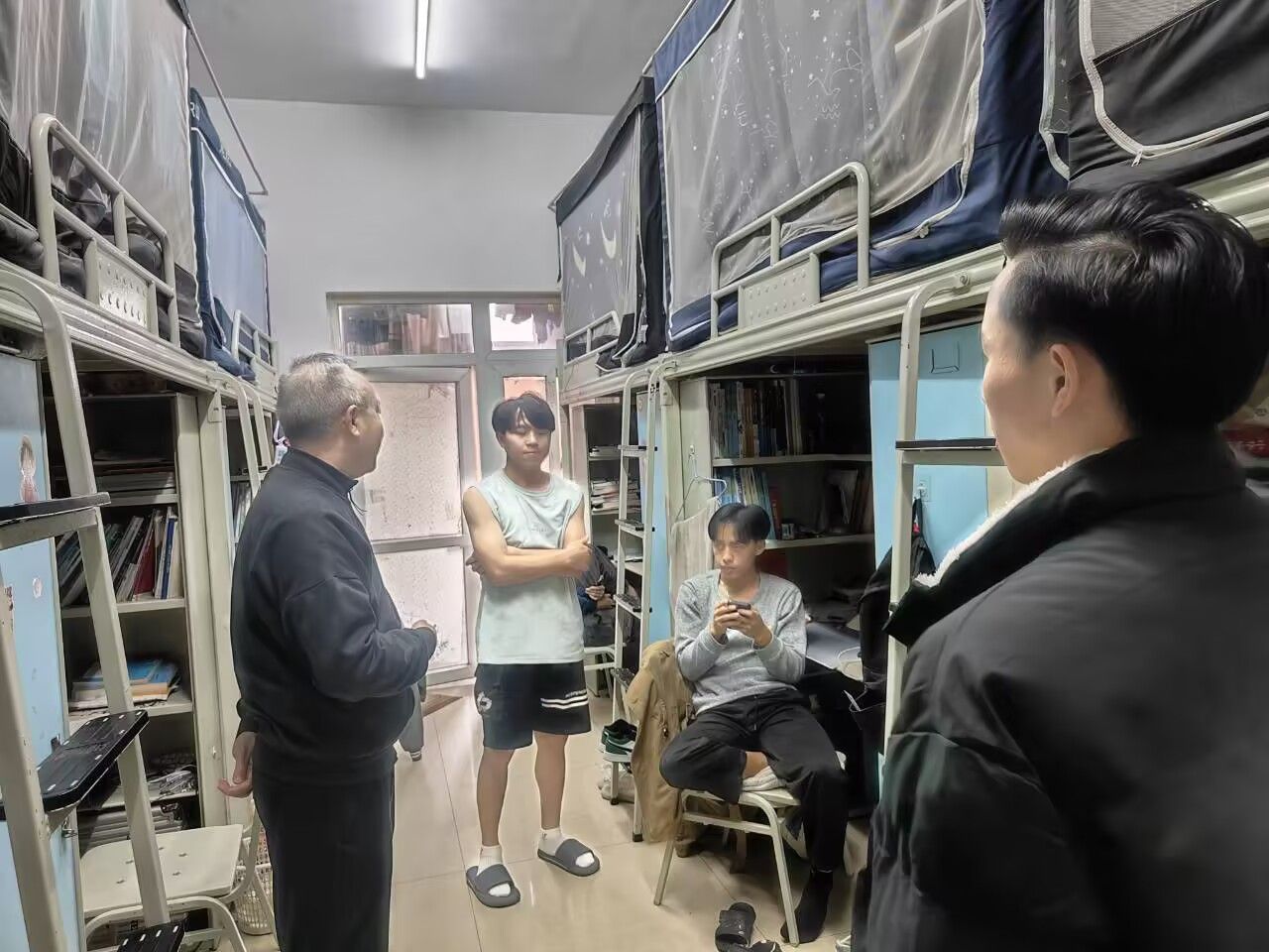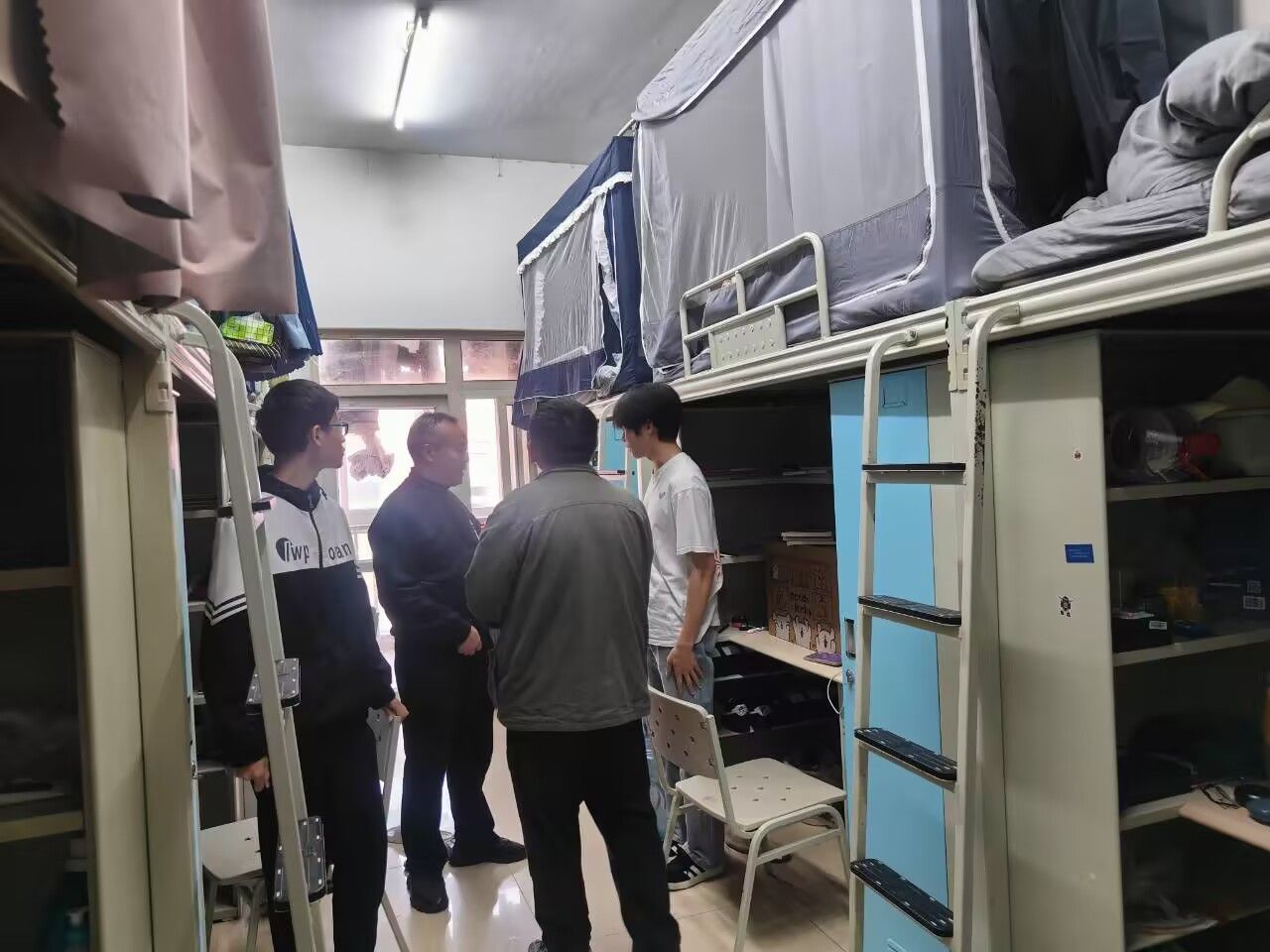 领导和辅导员们重点检查用电安全、通风换气和卫生等,及时纠正学生的不正确行为,表扬和肯定同学们做得好的方面;了解和关心同学们生活和学习状况,叮嘱同学们严格遵守宿舍管理规定,正确处理人际关系,和睦相处,携手营造安全舒适的居住环境。此外,各位老师还走访了留学生寝室,关心留学生的生活和学习,强调寝室安全的重要性。