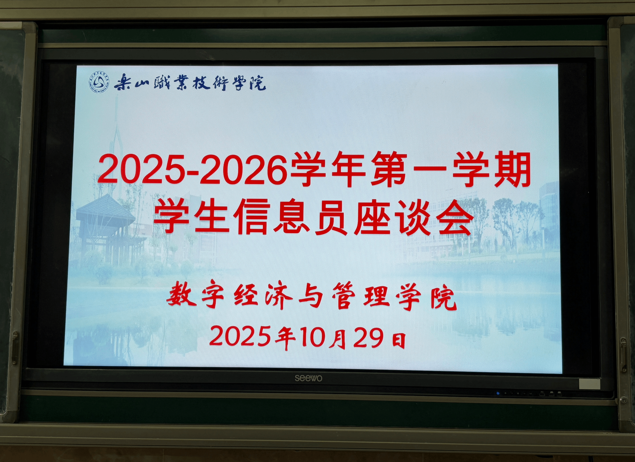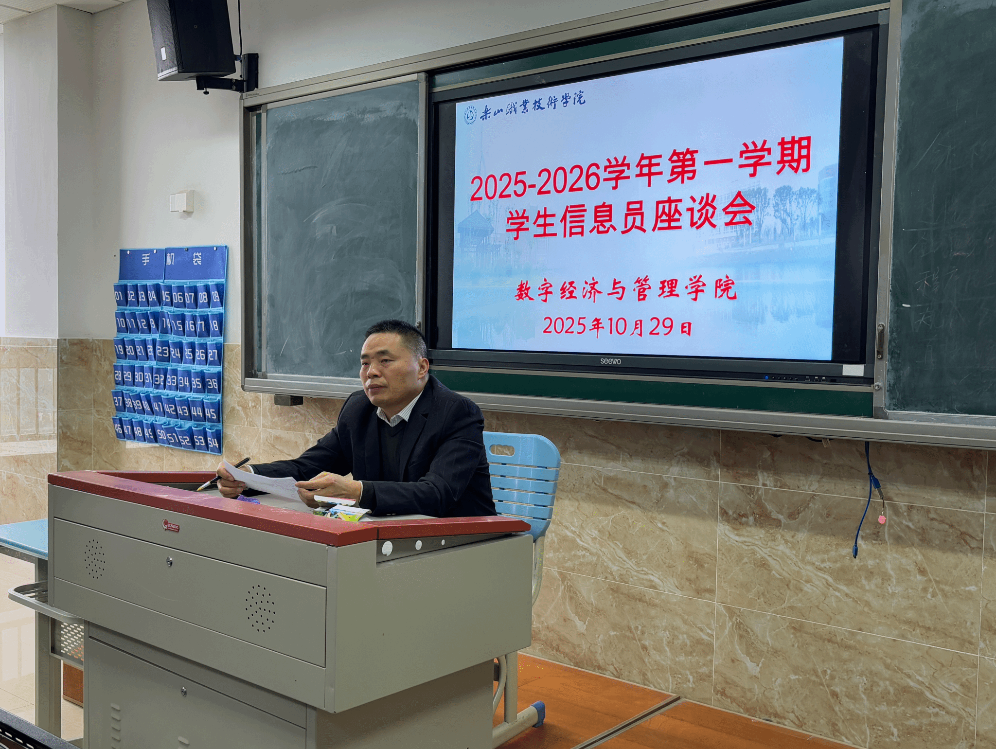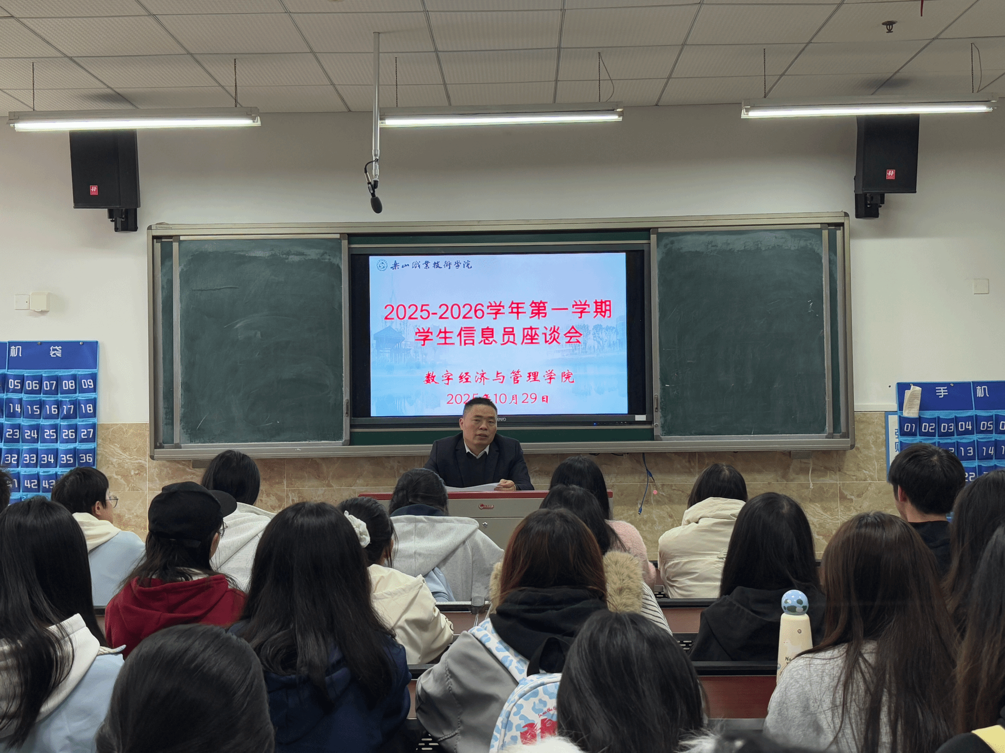 2025年10月29日中午,乐山职业技术学院数字经济与管理学院在教学楼1B404召开10月教学督导信息员座谈会,数字经济与管理学院副院长何瑞、督导干事刘佳敏及各班信息员参会。