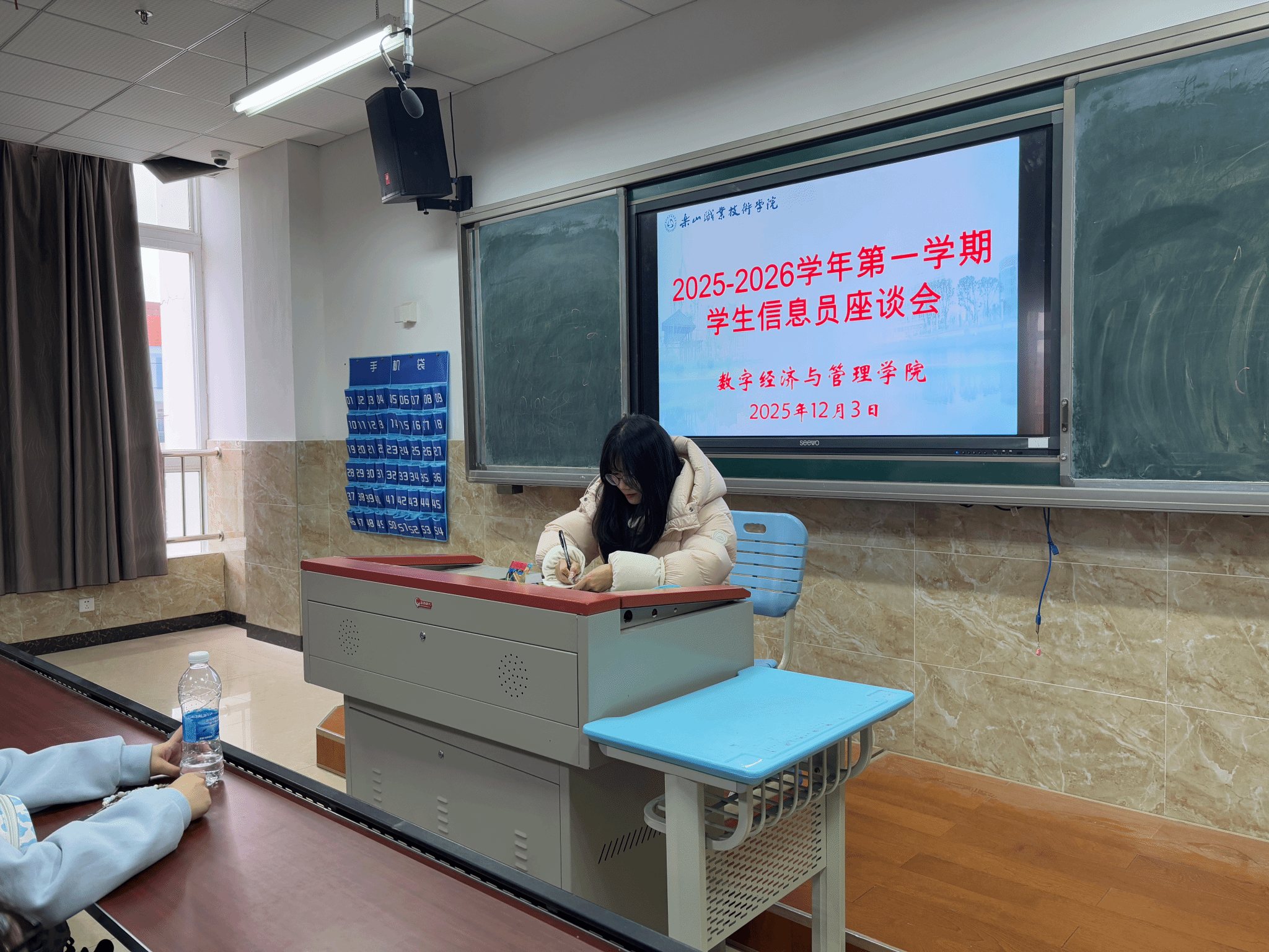 2025年12月3日下午,乐山职业技术学院数字经济与管理学院在教学楼1B404召开11月教学督导信息员座谈会,数字经济与管理学院督导干事刘佳敏老师及各班信息员参与此会议。