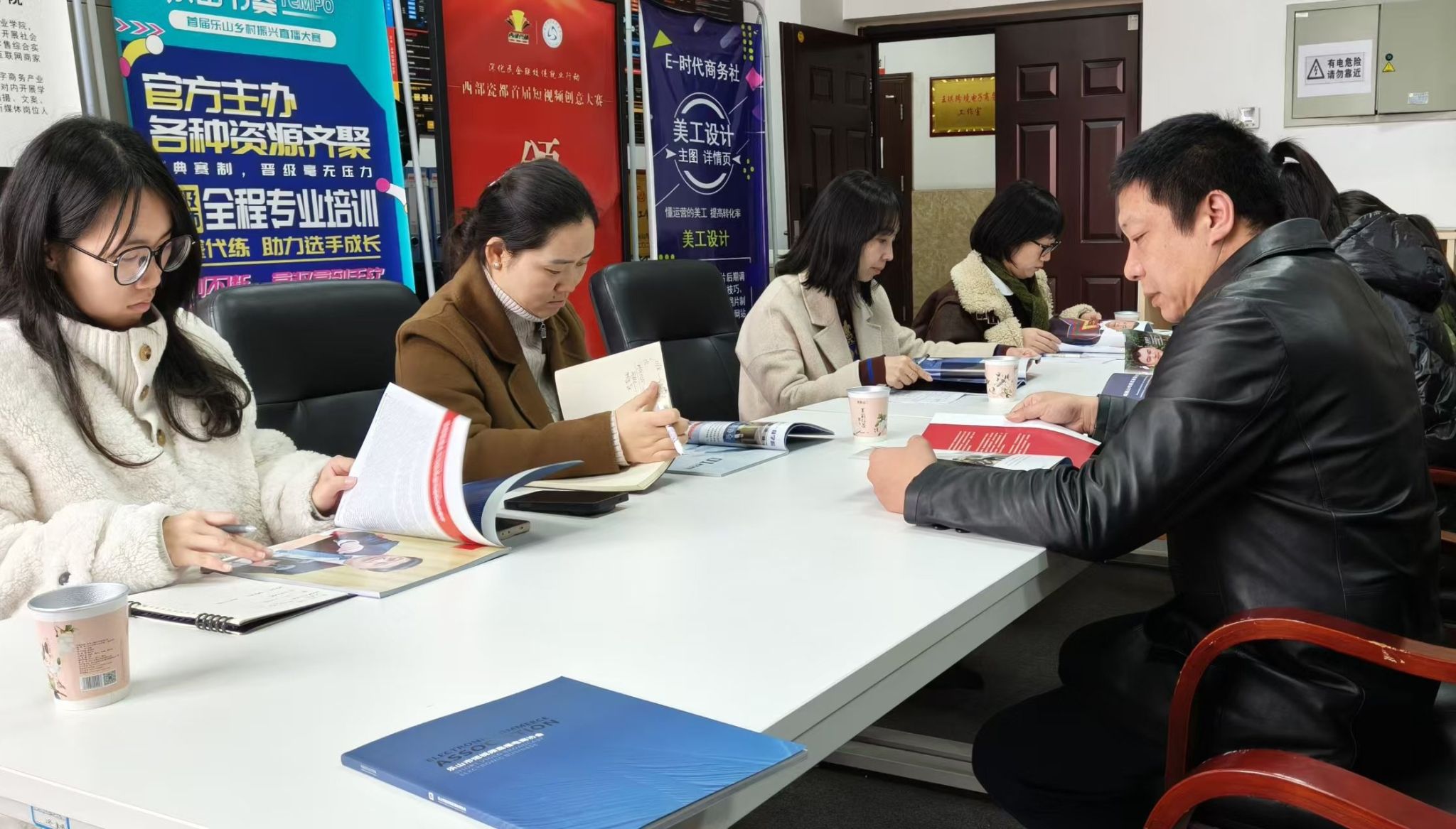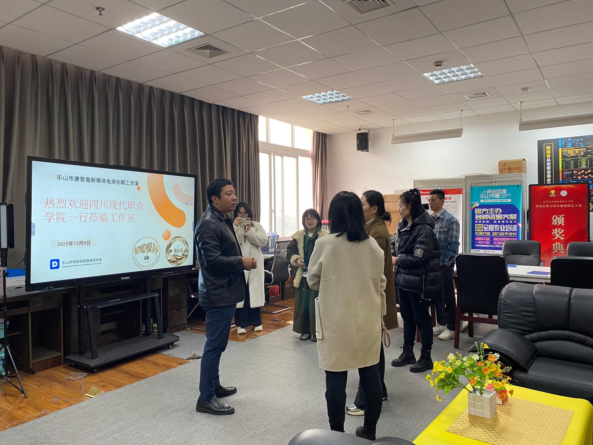 为深化新媒体电商领域产教融合实践,共享专业建设与人才培养优质经验,2025 年 12 月 9 日下午,四川现代职业学院数字经济学院数字媒体技术专业群负责人王贇带队,电子商务专业负责人于晶、骨干教师李怀瑾、黄丹青等一行 4 人,专程赴乐山职业技术学院数字经济与管理学院乐山市唐智鑫新媒体电商工作室开展交流学习。