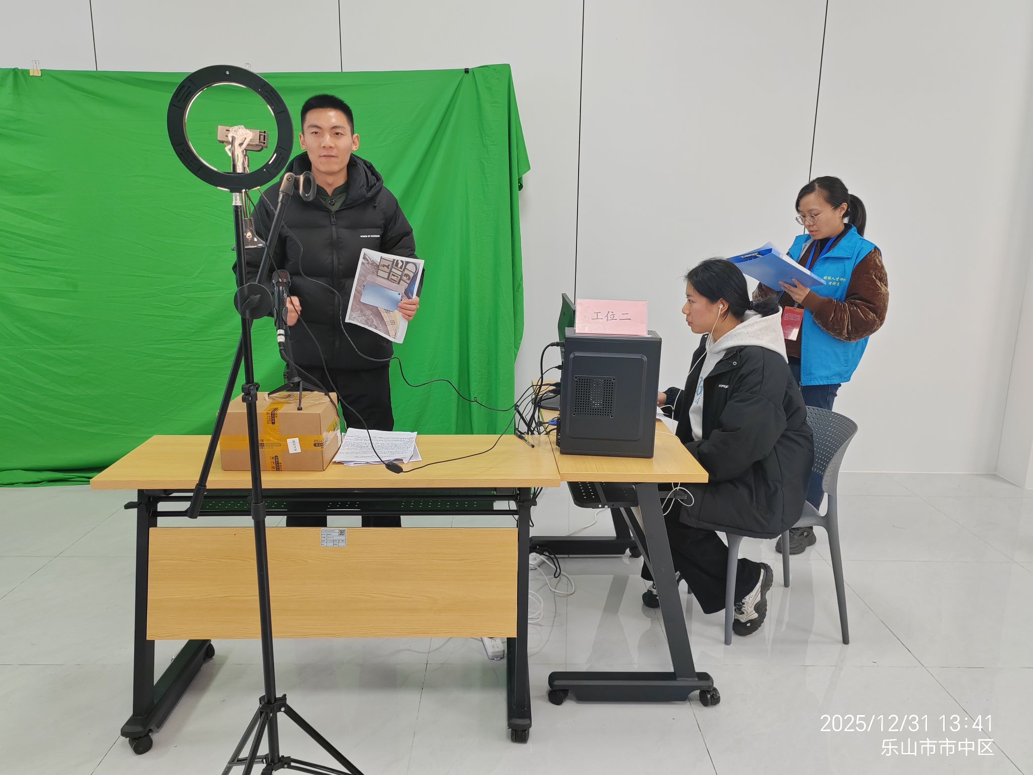 2025年12月31日,数字经济与管理学院武会玲、杨媚两位教师,受乐山市人力资源和社会保障局、商务局联合邀请,前往市中区开展互联网营销师(初级+高级)职业技能等级实操考评工作。