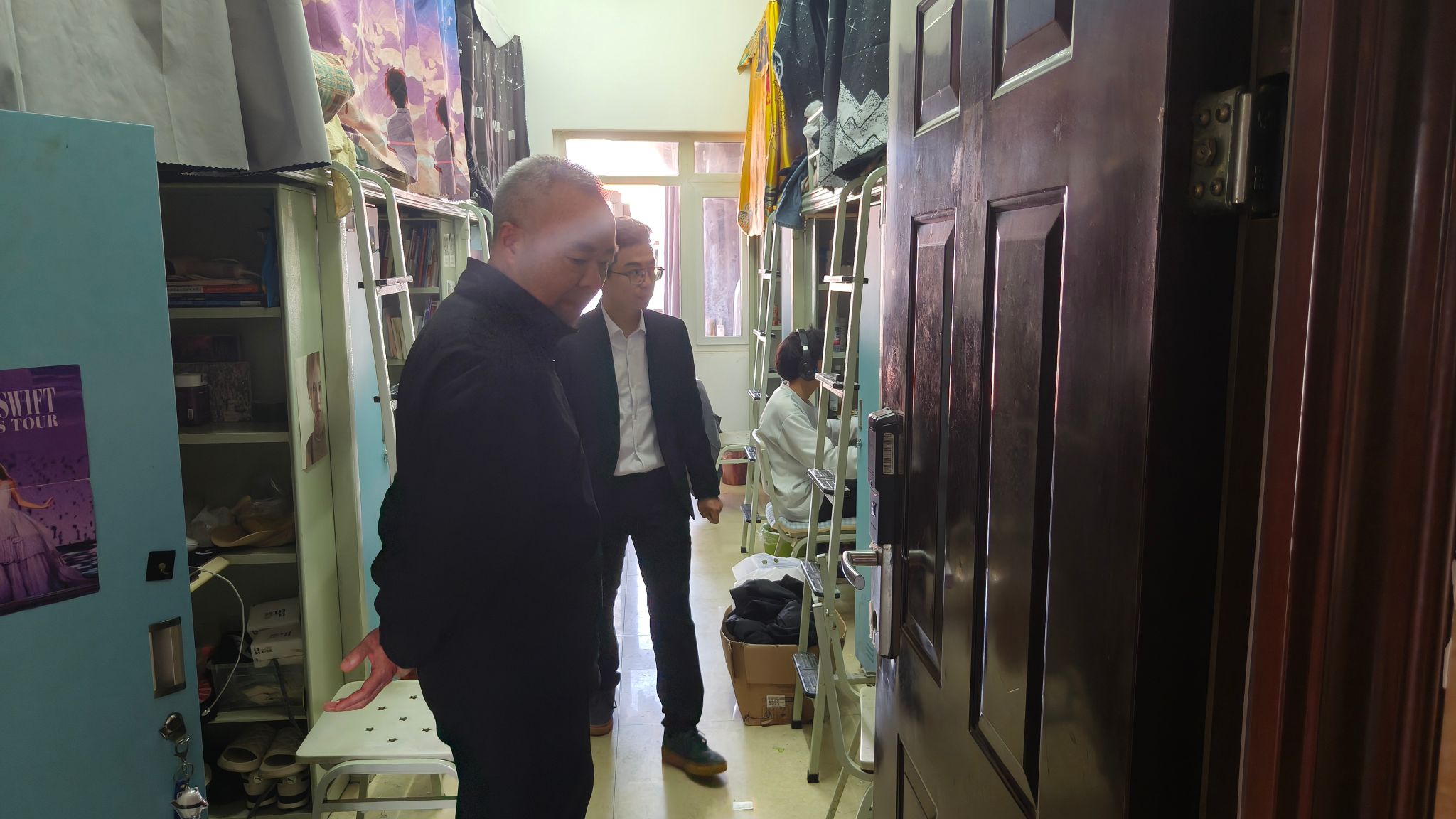 本次检查由数字经济与管理学院党总支书记黄泓轲、专职副书记易新忠、学工办工作人员、全体专兼职辅导员及自管会学生代表共同参与,分成两组深入男女学生公寓进行安全卫生检查,重点排查用电和防火安全,现场指导学生正确用电,引导学生高度重视安全,时刻牢记安全第一;查看寝室内务整理,叮嘱同学们及时清理卫生死角,保持环境整洁:引导学生关注室内通风,开窗换气,降低病菌滋生风险,守护自身健康。