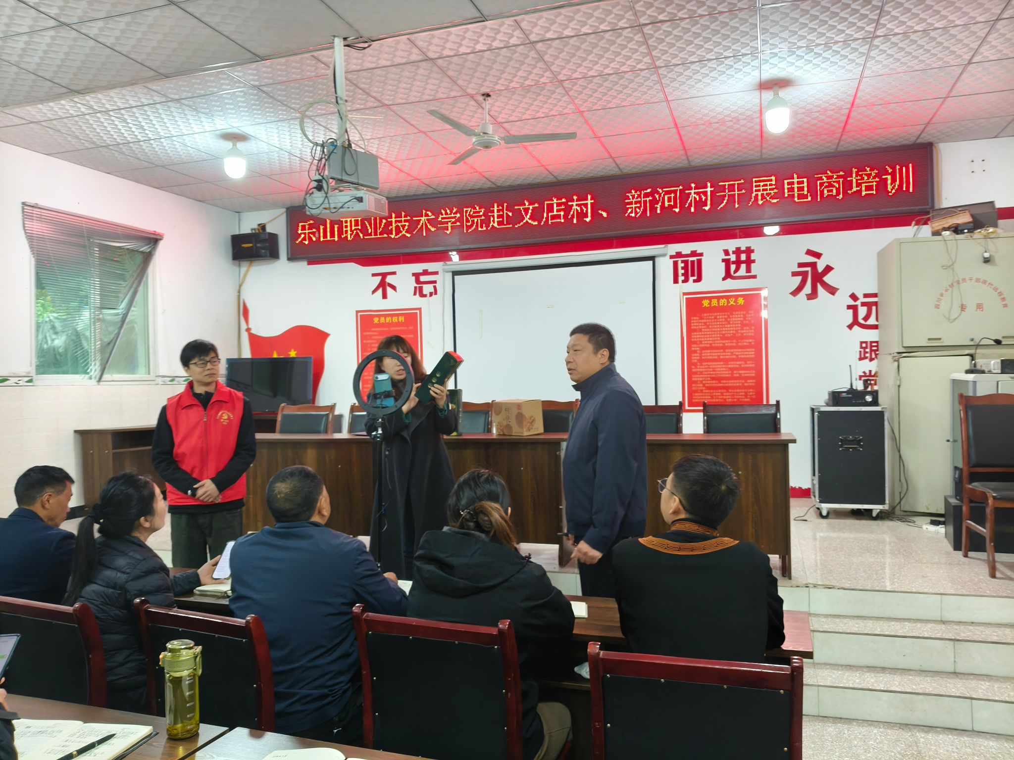 为深入贯彻落实乡村振兴战略部署,切实发挥高校智力赋能优势,破解定点帮扶村农产品销售难题,3月13日,我校教师唐智鑫、武会玲、周雪一行,赴金口河区文店村、新河村开展短视频直播电商专题培训,为当地30余名村民送上实用的电商运营技能干货,助力特色产业提质增收。
