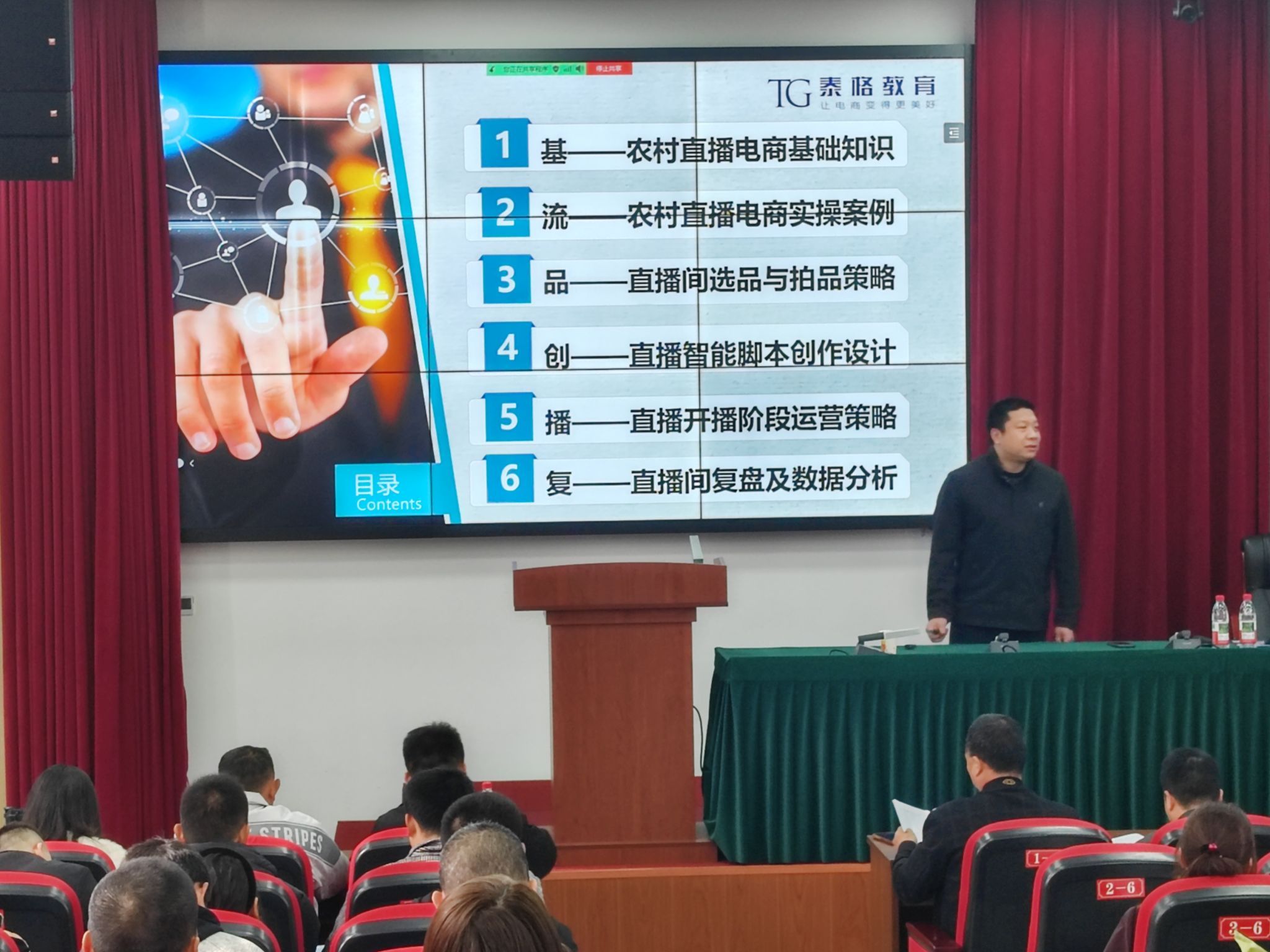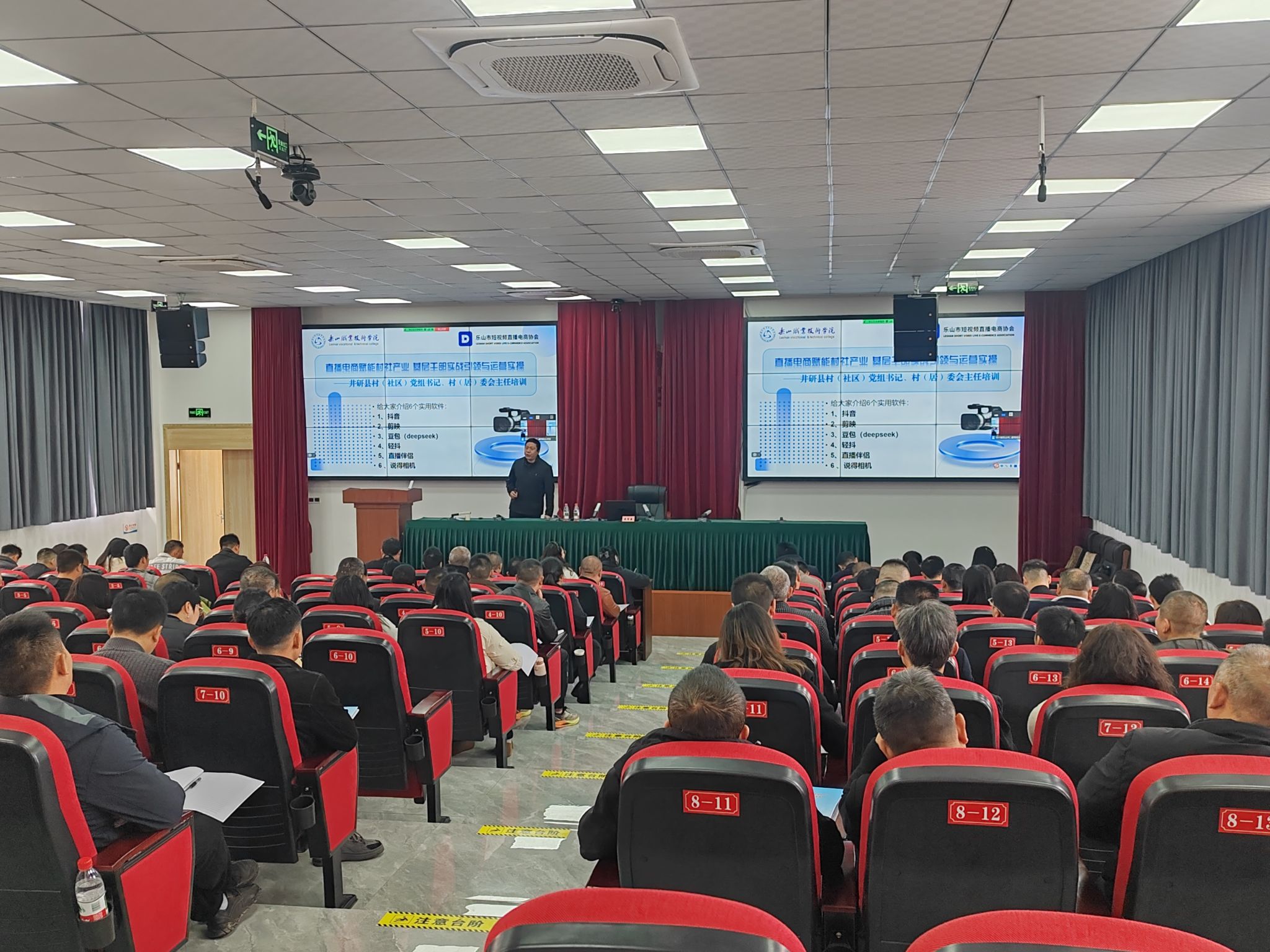 为深化校地合作,助力乡村振兴,推动数字经济与村社产业深度融合,3月15日上午,我校乐山市唐智鑫新媒体电商创新工作室领衔人唐智鑫老师,应邀前往中共井研县委党校,为全县各村(社区)党支部书记、村(居)委会主任等基层干部开展直播电商赋能村社产业专题培训。培训采用“现场讲座+线上直播”双会场模式,实现参训人员学习全覆盖,切实将我校电商专业优势转化为基层产业发展的实践动能。
