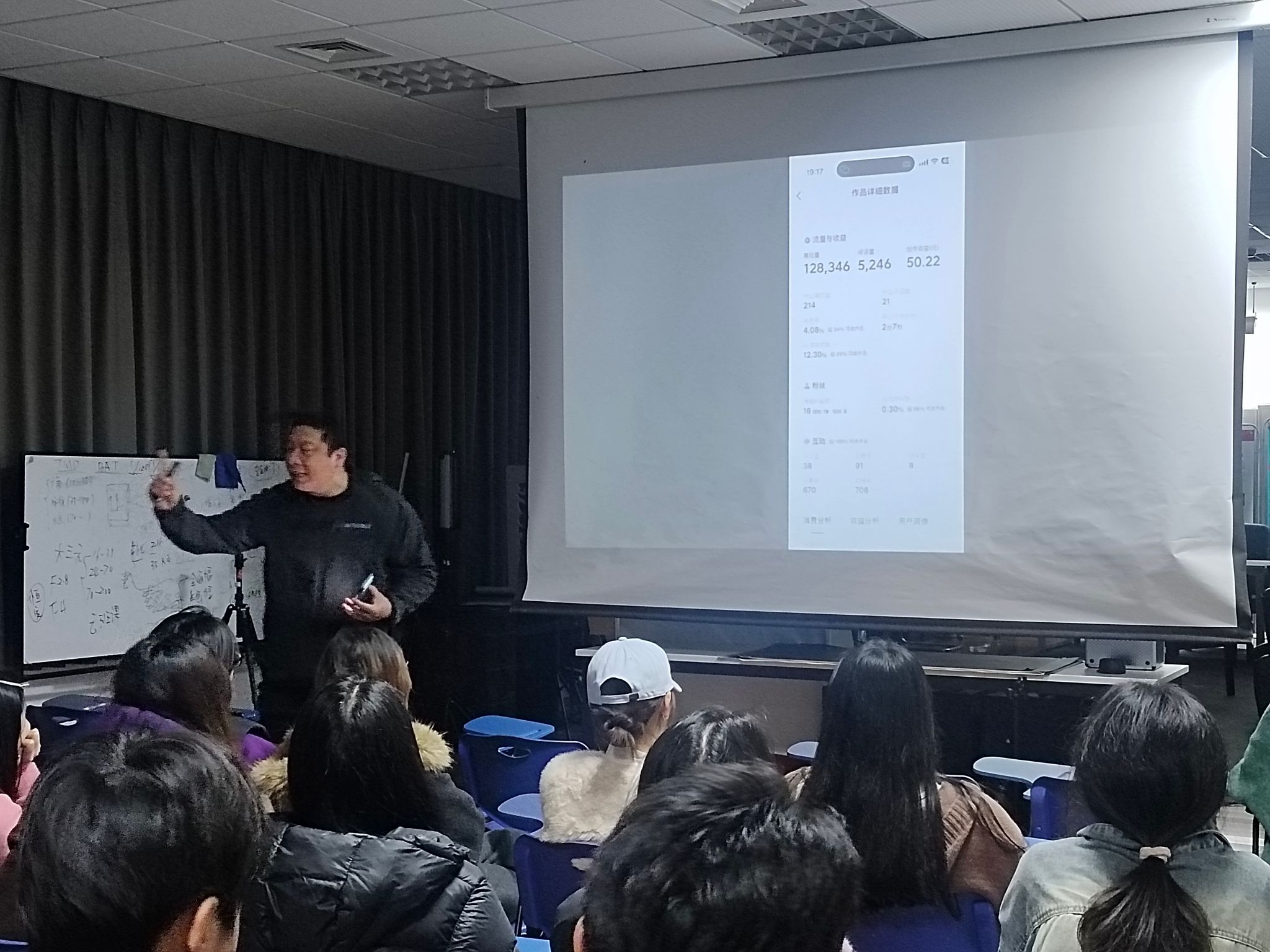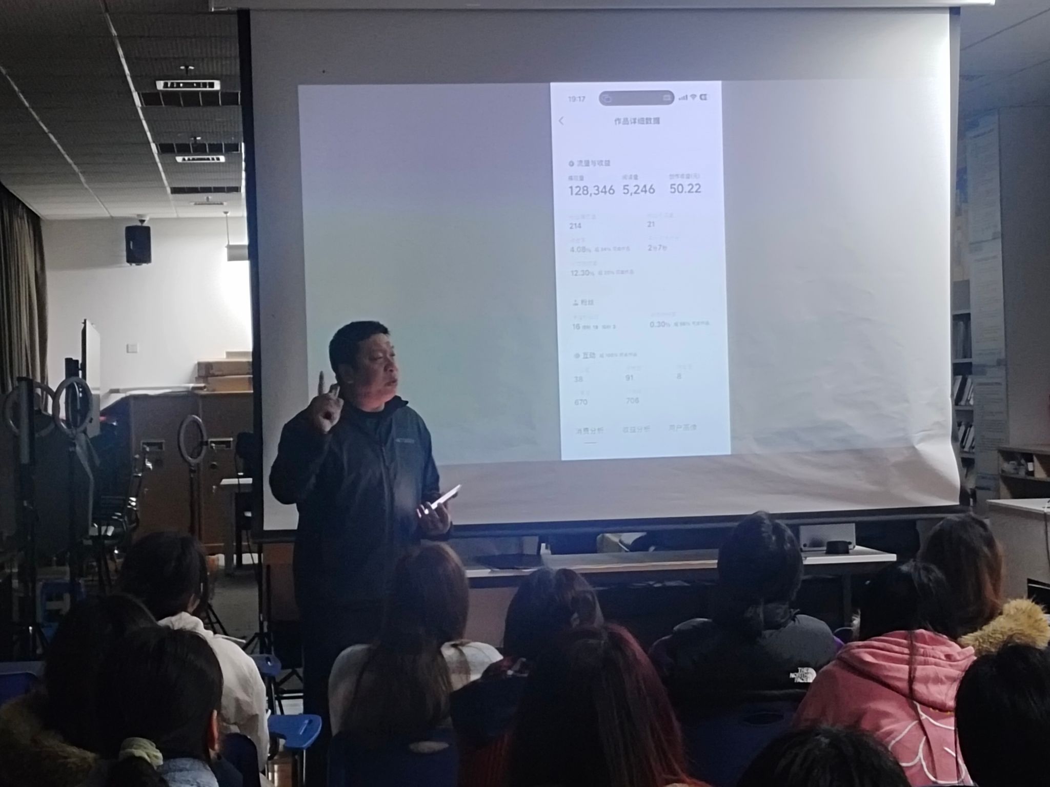 活动现场,唐智鑫老师结合多年自媒体运营实战经验,围绕今日头条美食账号全生命周期运营展开系统分享:从美食拍摄、图片选择、账号运营等专业技巧,到挖掘乐山美食地域特色、注入人文情感的文案创作方法,再到电商直播流量获取、用户转化与商业变现路径,内容兼具实操性与前瞻性,精准贴合平台规则与地方美食传播需求。互动环节中,师生们围绕账号定位、选题策划、流量运营等核心问题积极交流探讨,主讲老师逐一细致答疑,现场氛围热烈而专注。