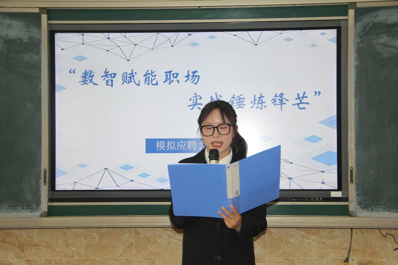 为深入贯彻教育部“春季促就业攻坚行动”精神,切实提升学生求职竞争力,搭建校园与职场衔接桥梁,乐山职业技术学院数字经济与管理学院团委于4月15日举办了“数智赋能职场,实战锤炼锋芒”模拟应聘大赛。学院特邀企业代表担任评委,为参赛选手提供专业化、实战化指导,全院师生共同参与本次活动。