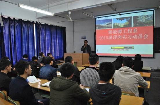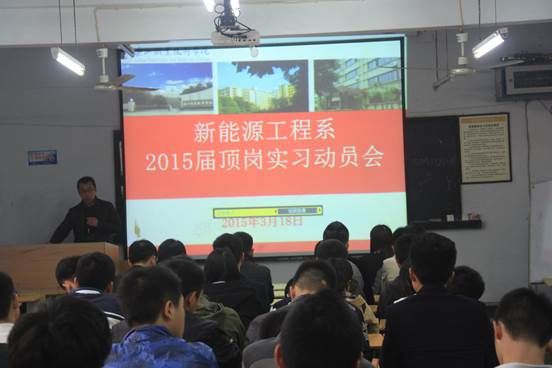 2015年3月18日下午2:00,新新能源工程系在教学楼3-8教室召开2013级学生大会。会议主题有:2015届顶岗实习动员;北京木联能软件技术有限公司副总经理李韧学术讲座;北京木联能软件技术有限公司现场招聘会。