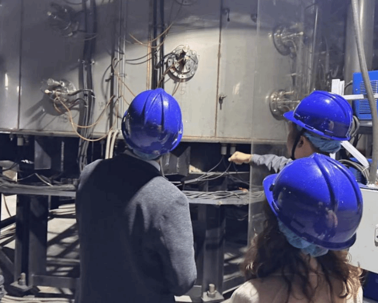 企业技术人员系统阐述了多弧离子镀膜技术,重点围绕 设备配置、操作流程、工艺控制要点、质量检验项目与方法、产品特性及应用领域等核心模块展开详实介绍。参观期间,双方实时探讨了镀膜技术的应用场景拓展、工艺优化路径及技术创新方向。教师团队结合教学科研实践提出针对性问题,技术人员逐一予以专业解答。交流中,宋院长特别关注到技术难点集中于颜色精准调控以及调色过程涉及多变量耦合效应。基于此,双方聚焦操作流程优化与员工技能门槛降低等核心议题进行了深度研讨。