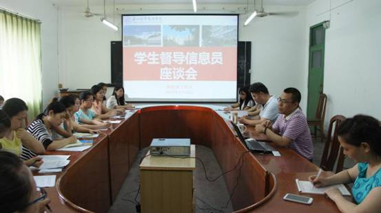 为营造良好的育人、学习环境,2015年6月10日下午,新能源工程系在3-5会议召开了学生督导信息员座谈会。出席此次会议的有系党总支书记路喜苓、系副主任邓丰、教学管理办公室的部分老师、学习部成员及各班学生督导信息员。