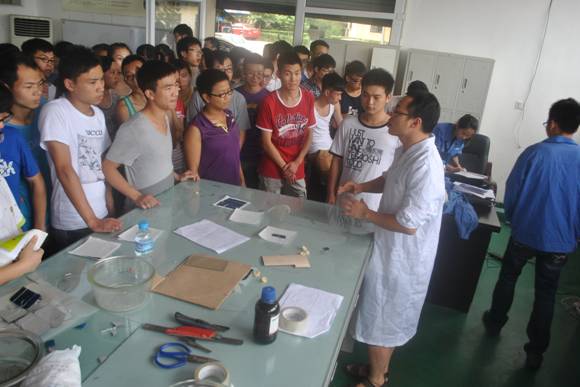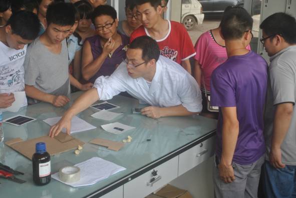 2013年6月7号下午3点,乐山师范学院物理与电子工程学院材料科学与工程(光伏材料与应用方向)专业共70余名学生在李贤博士、王诚谦、曹进三位老师的带领下参观了新能源工程实训工厂。