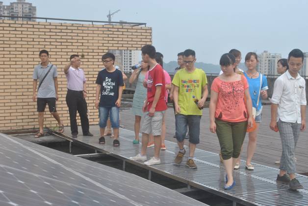 同学们依次参观了多晶硅仿真实训工厂、光伏组件实训工厂、屋顶光伏教学电站、风光互补实训室等,对多晶硅生产企业的环境、设备、运行模式,光伏组件生产、光伏电站运行等光伏行业产业有了一个大致直观地了解。