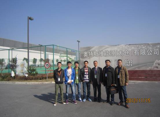 2012年11月13日我系毕业顶岗实习领导小组由系分管学生工作张勇主任带队联同学院招生就业处工作人员一行四人前往我系校外实习基地江苏海润光伏科技有限,此行目的是看望我系2012届参加毕业顶岗实习工作的28名实习学生在企实习工作情况,通过与企业领导座谈及时反馈和掌握学生在企生活、工作、思想情况加强对学生的日常管理和思想引导工作。与此同时此行另一重要目的是对我系2012届高中专在企就业的4名学生进行毕业生跟踪调查工作听取企业专家对我院毕业学生提出的宝贵意见。