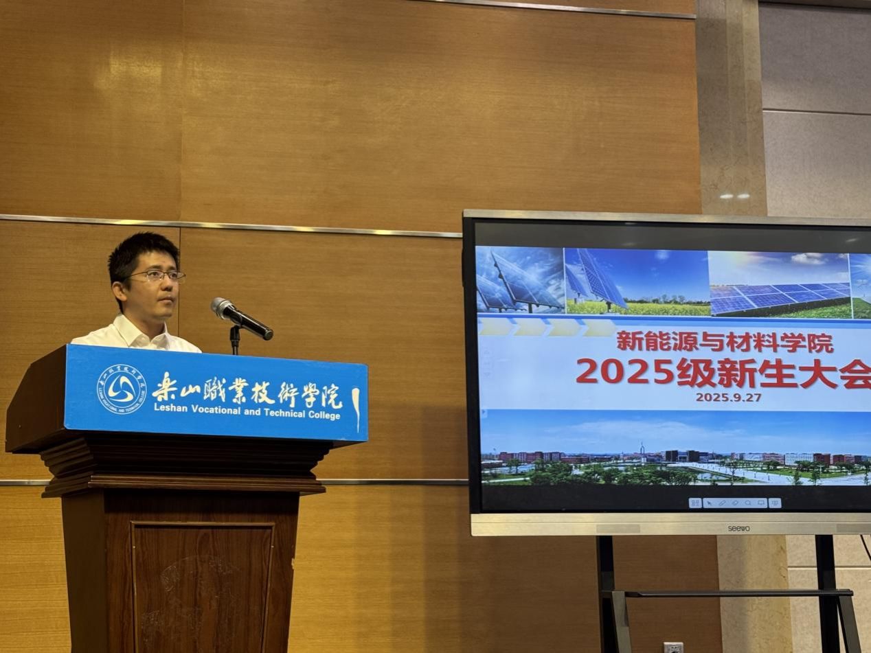 2025年9月27日14:00,乐山职业技术学院新能源与材料学院在学术报告厅召开2025级新生大会。参加此次会议的有二级学院党总支书记、院长邓盼盼、党总支专职副书记邓丰、副院长宋经纬、2025级全体辅导员及新生。