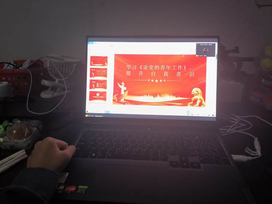 活动开始,组织委员首先为大家讲述了《论党的青年工作》的主要内容,并采用PPT的方式展示习近平总书记的精彩讲话片段。让同学们知道了在新时代新征程中,中国青年的奋斗目标和前行方向终归一点,就是坚定不移听党话、跟党走,努力成长为堪当民族复兴重任的时代新人。随后在团支书带领下,大家统一观看了关于新时代青年使命担当的相关教育视频。在视频播放的过程中同学们将自己带入角色,明白了青年的使命就是要用脚步丈量祖国大地,用眼睛发现中国精神,用耳朵倾听人民呼声,用内心感应时代脉搏,将这些融入到事业追求中。随着视频播放完毕,同学们感慨颇多。最后团支书对本次主题团日活动进行总结,宣告活动完毕,大家井然有序地离开会议室。