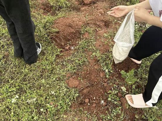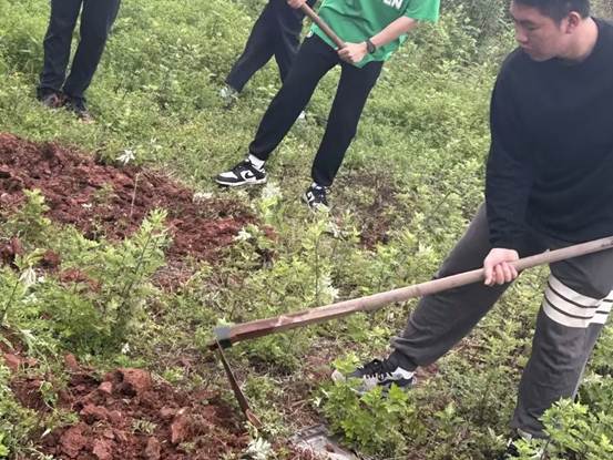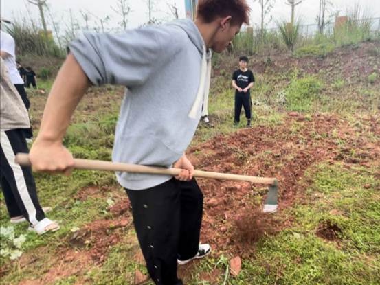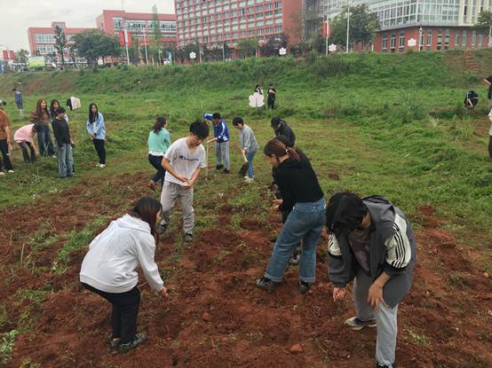 在学院的劳动教育基地,首先由辅导员交代了劳动安全注意事项后,带头给同学们示范如何除草耕地播种。同学们经过学习,也纷纷行动起来,井然有序,干劲十足,都以积极的态度、饱满的热情和实际行动认真地对待这次劳动实践活动。