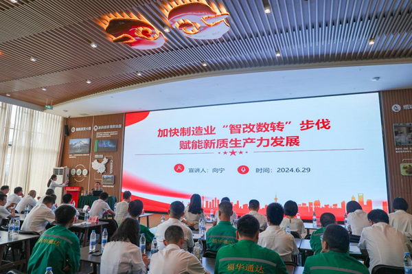 2024年6月29日下午,人工智能学院院长向宁受邀面向四川乐山福华农科投资集团有限责任公司(以下简称福华集团)党员同志在四川森态源生物科技有限公司会议室讲授专题讲座,他以“加快制造业智改数转,步伐赋能新质生产力发展”为题,为福华集团的党员同志们带来了一场深入浅出的前沿技术分享。本次讲座共有80余人参加,时长3学时。