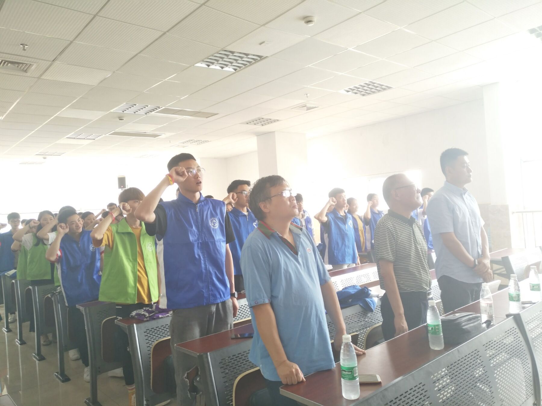 为了丰富和深化大学生思想政治教育的实践内容,促进青年学生在理论和实践相结合的过程中增长才干、健康成长的重要课堂,从而优质成才、全面成才,电信系于2018年6月20日下午一点在1B204开展暑期社会实践启动仪式暨宣誓大会。本次大会由社会实践部组织,部员曹译凌同学担任主持人,电信系各班部分同学参加。