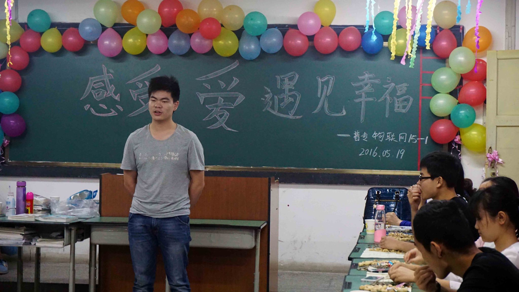 为了增强大学生的心理健康意识,提高大学生心理调节能力,培养良好地心理品质,促进大学生的思想道德素质利于心理健康成长。物联网15-1班全体同学于2016年5月19日晚7点30分在教学楼403教室开展以“感受爱•遇见幸福”心理健康为主题的班会活动,辅导员张素芬和专业导师胡燏出席了本次活动。 此次活动由心理委员李彬作总策划组织开展,由戴元松、杨若皎担任主持人。首先,两位主持人为大家讲述心理健康的重要性;接着,各寝室室长对本寝室成员的相处情况发表自己的感想;其次,袁俊瑶、蒋鑫、廖智勇、于小江、林栋成五位同学为大家表演心理情景剧“一路阳光,温暖同行”;随后,主持人组织大家玩小游戏“松鼠和大树”,全班同学积极参与其中,游戏后主持人对几位同学进行提问,同学们畅所欲言;最后,辅导员及全体同学合影留念,本次活动圆满结束。