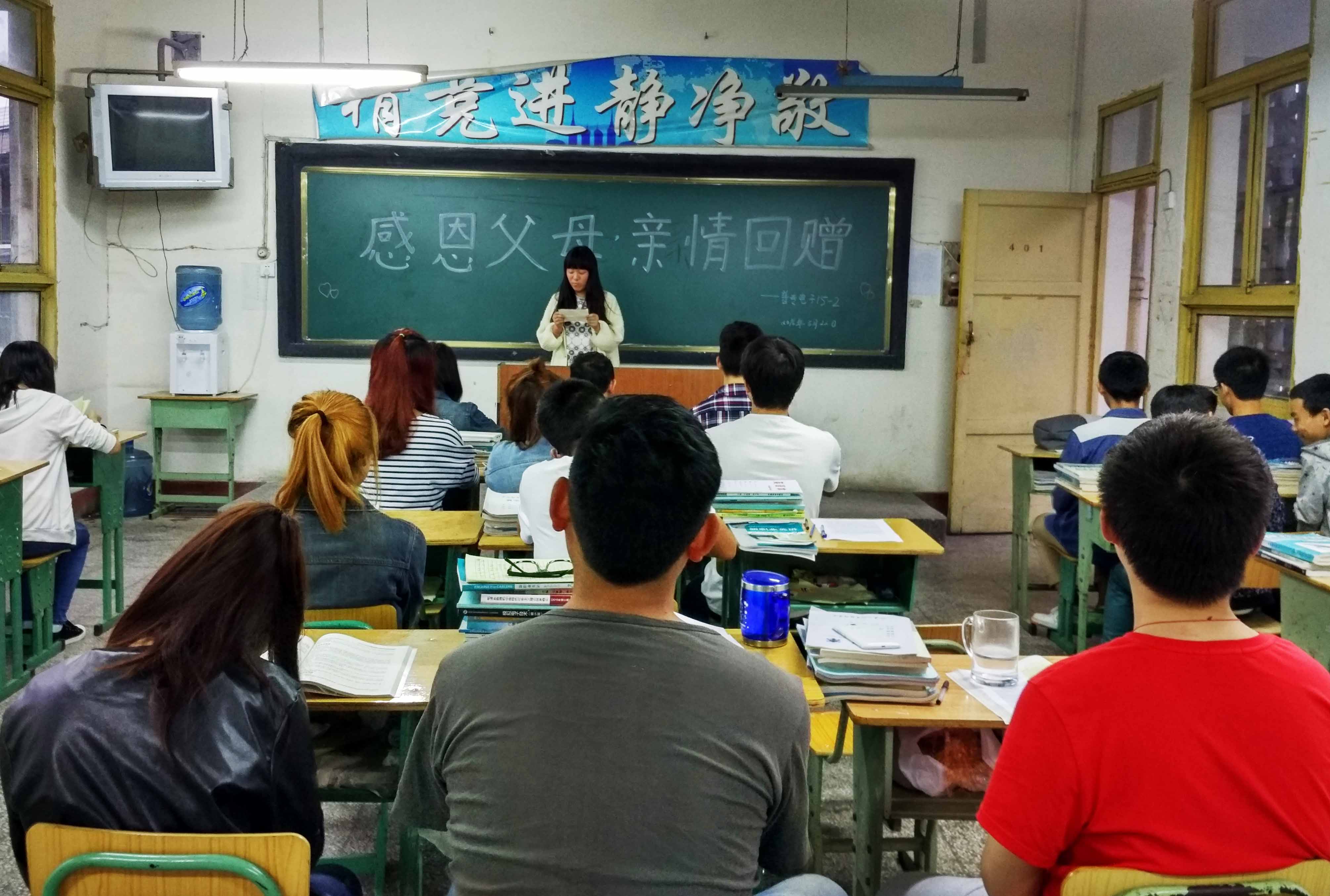 一开始主持人为我们讲述了父母的艰辛,让我们每个人都要有一颗感恩的心。全班齐唱“感恩的心”。随后4位同学讲述了自己与父母之间的亲情故事。接近尾声时候,主持人组织同学在卡片上写下自己想对父母说的话。