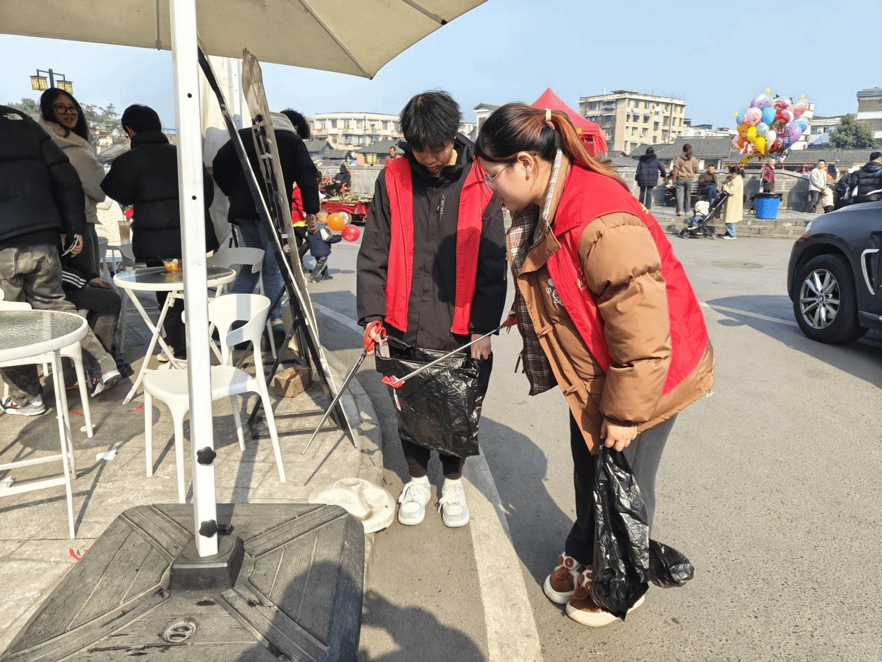 2025年1月1日,乐山职业技术学院人工智能学院“小青衣”志愿者服务队与苏稽古镇文旅支部携手,在苏稽古镇成功开展了元旦节志愿者服务活动。此次活动由人工智能学院郑毅同学担任领队,带领9名志愿者积极参与。