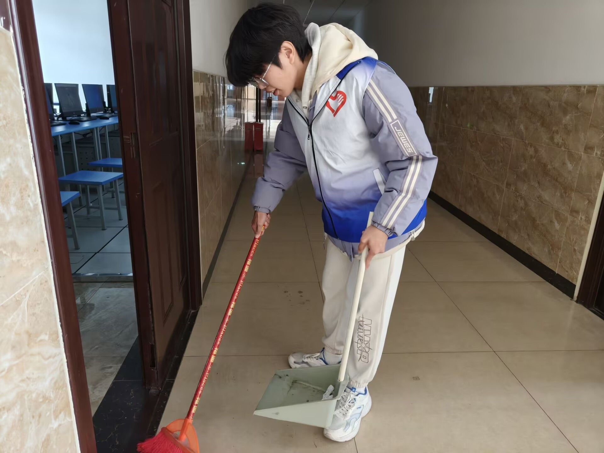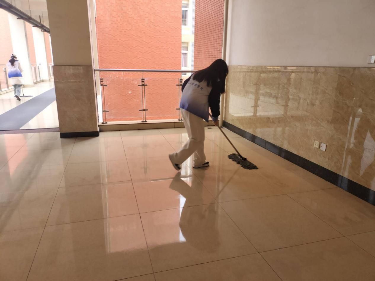 活动当天,大家早早集合。在进行简单分工后,带着清扫工具前往实训楼,教研楼。大家齐心协力,不放过任何一处卫生死角。有的认真拖地,使地面光洁如新;有的手持扫帚和簸箕,仔细清理角落的垃圾与灰尘。